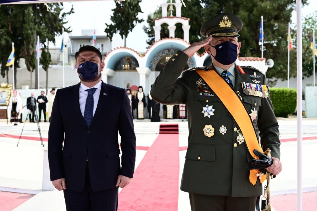 Ο Υφυπουργός Εθνικής Άμυνας κ. Νικόλαος Χαρδαλιάς, παρέστη σήμερα Παρασκευή 29 Απριλίου 2022, ως εκπρόσωπος του Πρόεδρου της Ελληνικής Κυβέρνησης κ. Κυριάκου Μητσοτάκη, στην τελετή εορτασμού του Μεγαλομάρτυρα Αγίου Γεωργίου, Προστάτη του Στρατού Ξηράς, που πραγματοποιήθηκε στην έδρα της Σχολής Πεζικού (ΣΠΖ), στη Χαλκίδα.