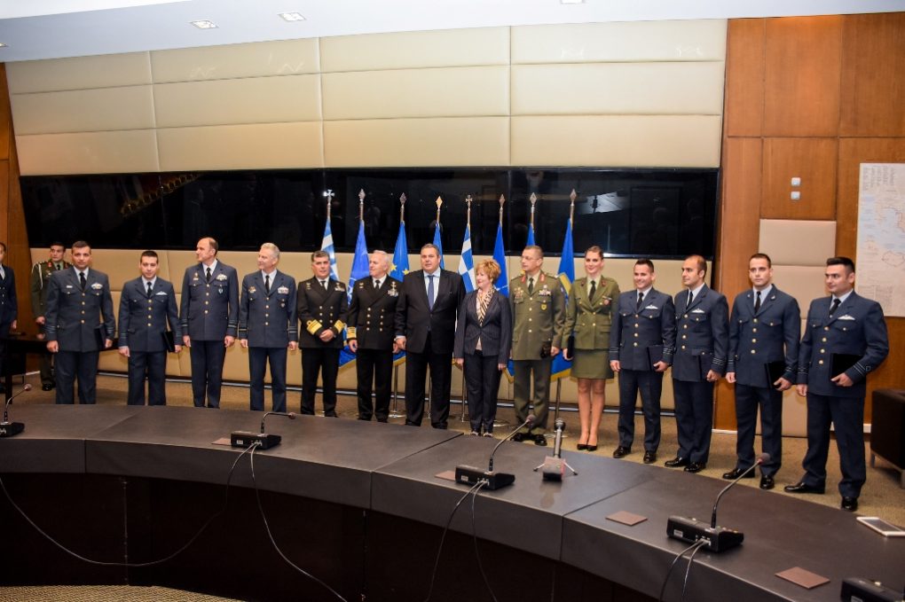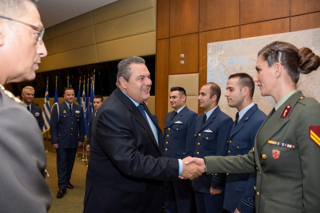 Ο Υπουργός Εθνικής Άμυνας Πάνος Καμμένος, συνοδευόμενος από τον Αρχηγό ΓΕΕΘΑ Ναύαρχο Ευάγγελο Αποστολάκη ΠΝ, τον Αρχηγό ΓΕΣ Αντιστράτηγο Αλκιβιάδη Στεφανή, τον Αρχηγό ΓΕΝ Αντιναύαρχο Νικόλαο Τσούνη ΠΝ και τον Αρχηγό ΓΕΑ Αντιπτέραρχο (Ι) Χρήστο Χριστοδούλου, απένειμε ηθικές αμοιβές σε στελέχη της Πολεμικής Αεροπορίας και του Στρατού Ξηράς. Στην τελετή απονομής παρέστη και η Υφυπουργός Εθνικής Άμυνας Μαρία Κόλλια – Τσαρουχά.