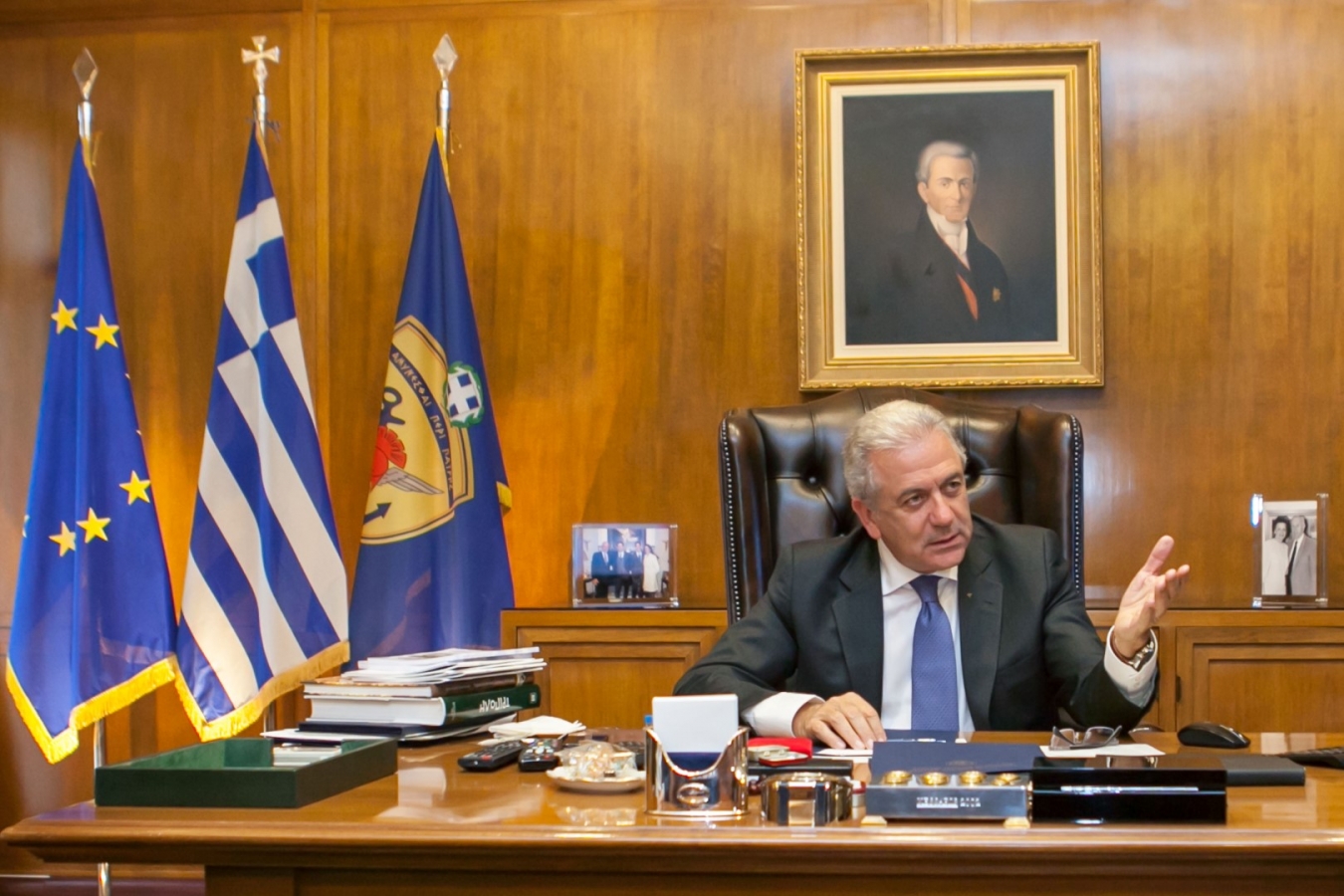Ν. ΧΑΤΖΗΝΙΚΟΛΑΟΥ: Πάμε τώρα να καλημερίσουμε τον Υπουργό Εθνικής Άμυνας, τον κύριο Πάνο Παναγιωτόπουλο, ο οποίος μετείχε στη συνοδεία του Πρωθυπουργού, στην ομάδα των Υπουργών
