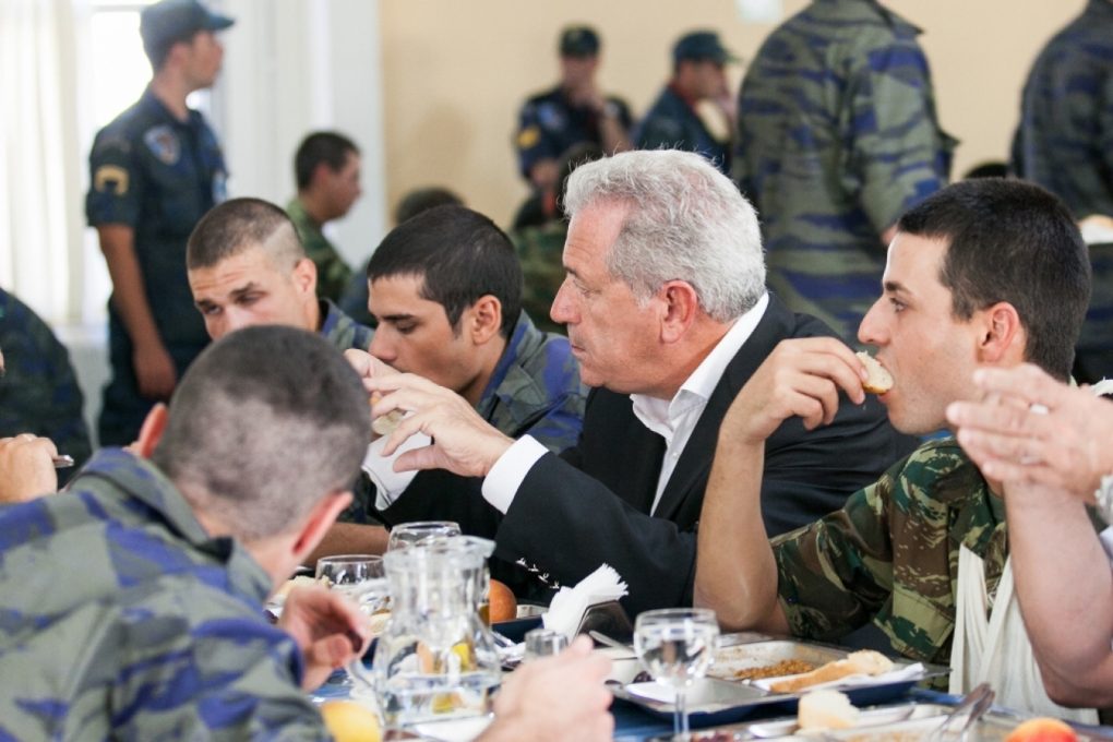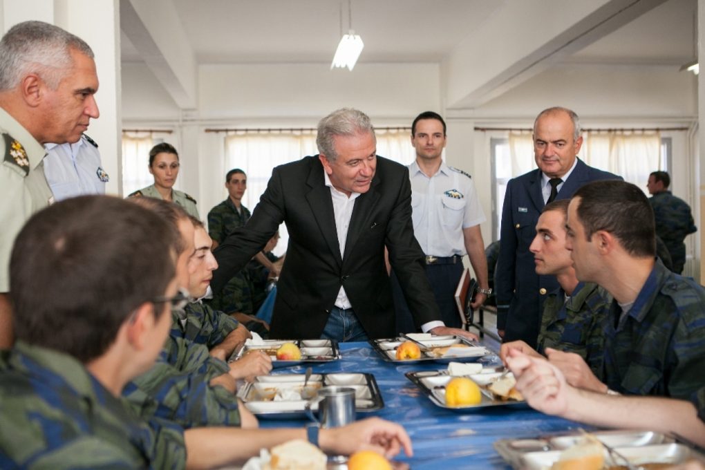Ο κ. Αβραμόπουλος είχε την ευκαιρία να ενημερωθεί από τον Διοικητή της Μονάδος για την αποστολή και την λειτουργία της ως Διακλαδικό Κέντρο Εκπαιδεύσεως Νεοσυλλέκτων, καθώς επίσης να παρακολουθήσει την εκπαίδευση και να συνομιλήσει προσωπικά με τους νεοσύλλεκτους του Στρατού Ξηράς, του Πολεμικού Ναυτικού και της Πολεμικής Αεροπορίας.