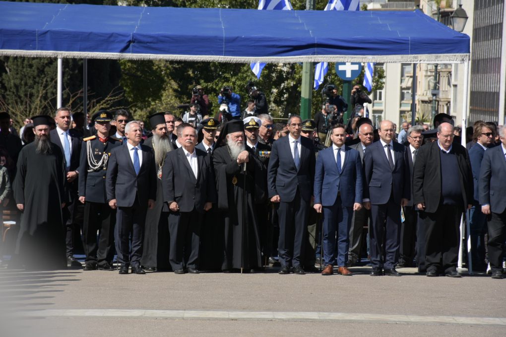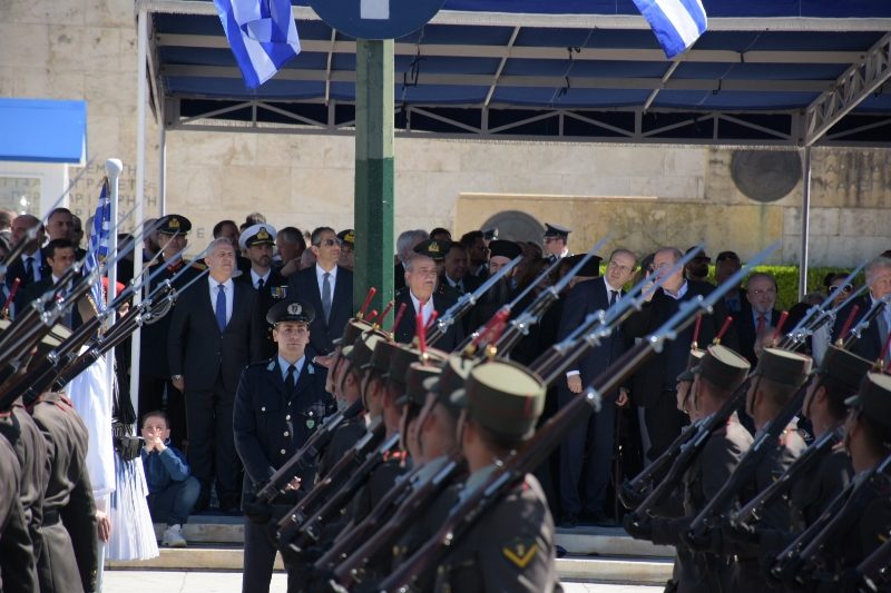 «Είμαστε σήμερα εδώ και παρακολουθήσαμε τους άνδρες και τις γυναίκες των Ενόπλων Δυνάμεων να παρελαύνουν με πολλή υπερηφάνεια, αποδίδοντας την τιμή που πρέπει στην επέτειο της Εθνικής Παλιγγενεσίας της 25ης Μαρτίου του 1821.