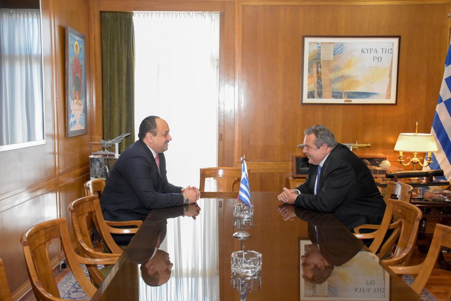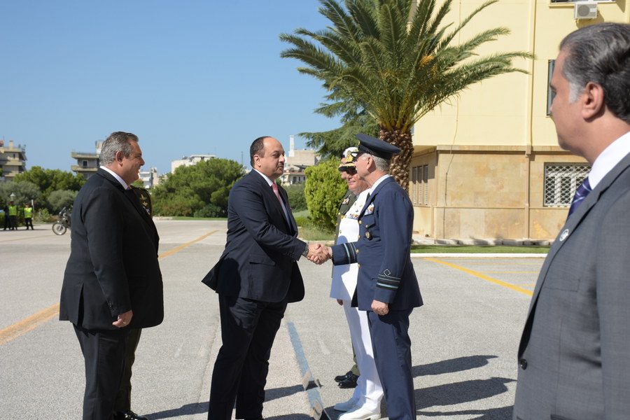 «Με ιδιαίτερη ικανοποίηση υποδέχομαι σήμερα στην Ελλάδα και στο Υπουργείο Εθνικής Άμυνας τον Αναπληρωτή Πρωθυπουργό, Υπουργό Άμυνας του Κατάρ και φίλο Εξοχότατο κ. Khalid bin Mohamed Al Attiyah και τους συνεργάτες του.