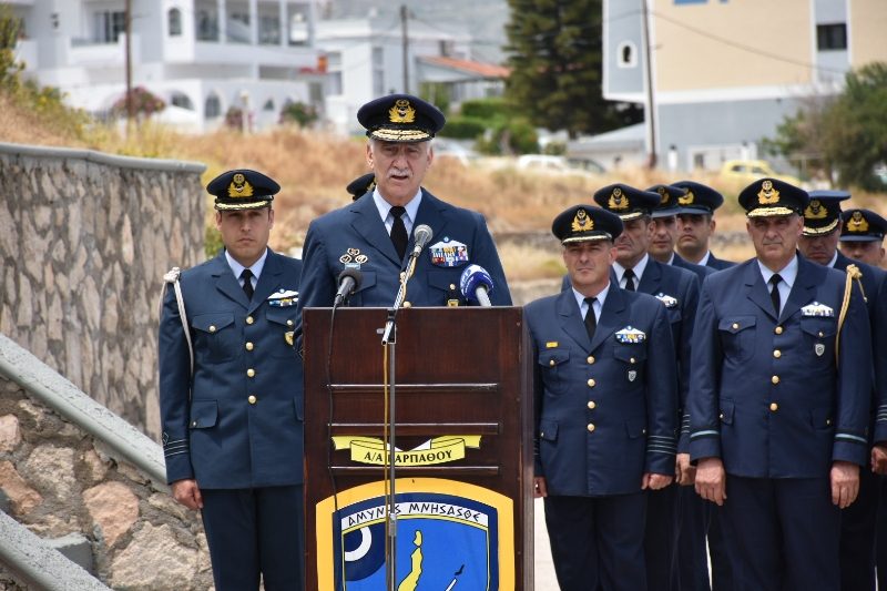 Ειδικά οι κάτοικοι των ακριτικών και δυσπρόσιτων περιοχών, όπως εσείς εδώ στην Κάρπαθο, γνωρίζετε πολύ καλά ότι οι Ένοπλες Δυνάμεις είναι δίπλα σας, εγγυητές της ασφάλειας, της εθνικής κυριαρχίας, της εθνικής ανεξαρτησίας και της εδαφικής ακεραιότητας της χώρας μας.