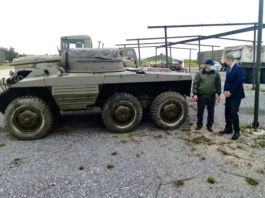 Afterwards, he went to 113 Combat Wing, where the Historic Military Vehicle Association has its office, and observed the refurbishing works on the M8 armoured vehicle.