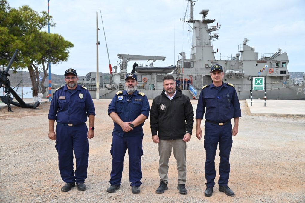 In addition, during his stay in Leros, he visited the gunboat NIKIFOROS and the Patrol Boat HS TOXOTIS, where he was briefed by the Commanders on the mission and operational capabilities of the war ships, and discussed with their crews.