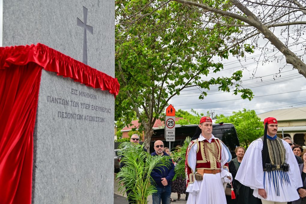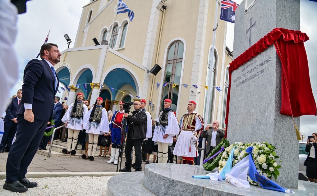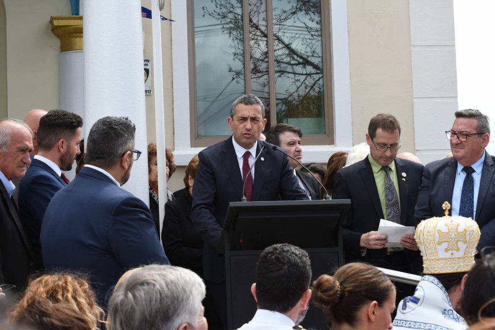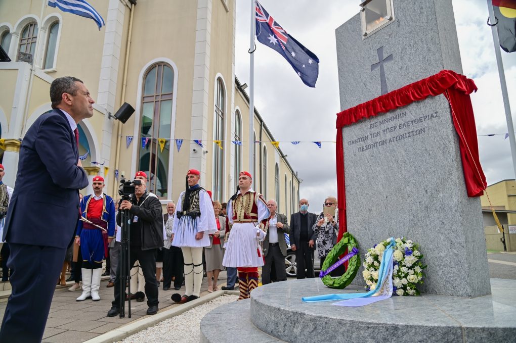 Next, he attended the unveiling of the new Monument to the Fallen Freedom Fighters, performed by the Australian Infrastructure &Transport and (Minister) of Energy and Mining Mr. Tom Koutsantonis, the erection of which took place in the courtyard of Saint George Church, on the occasion of the 200 years since the Greek Revolution.