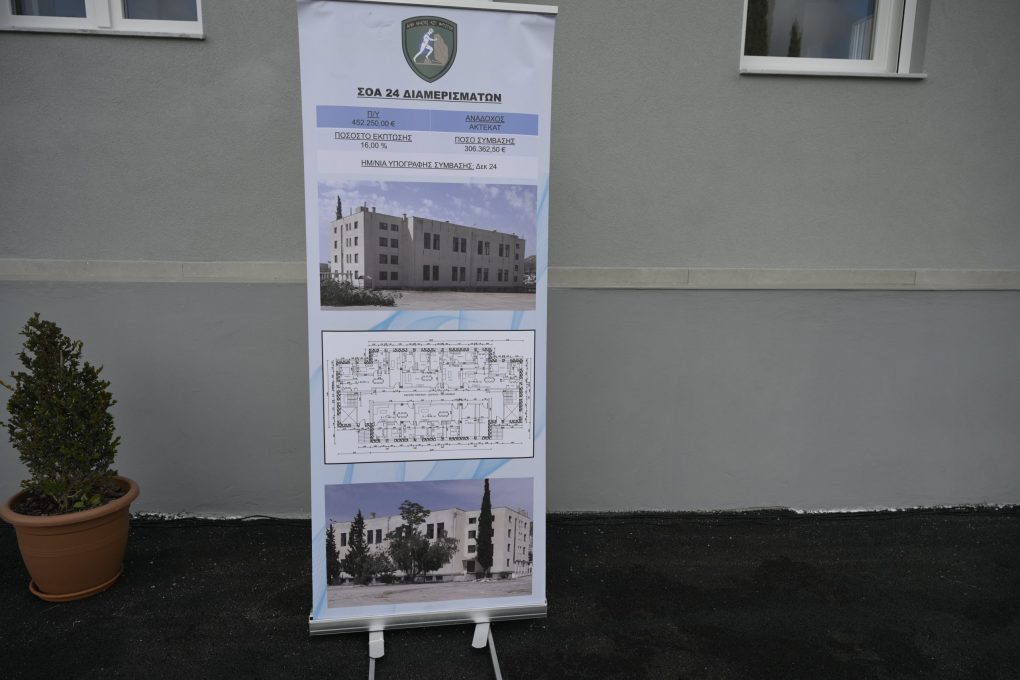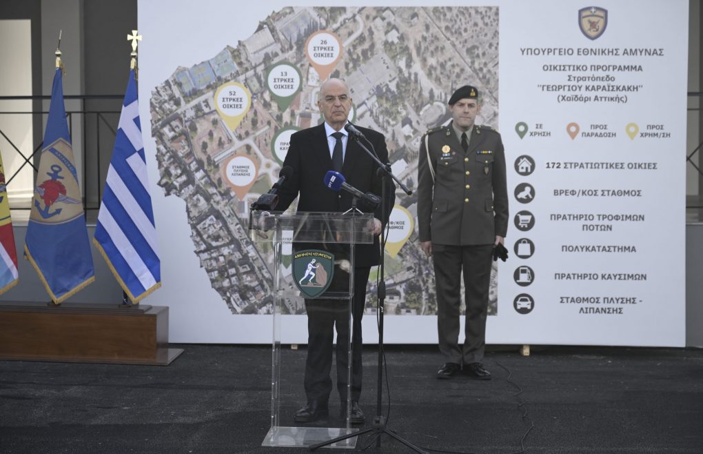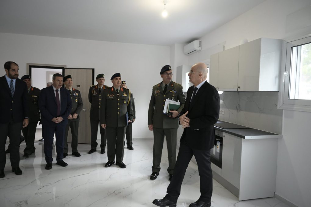 On Wednesday 26 February 2025, the Minister of National Defence Nikos Dendias attended the inauguration ceremony of the Officers residential complex at “KARAISKAKIS B” Camp in Chaidari. A consecration ceremony was carried out at the inauguration officiated by the Reverend Metropolitan of Nikaia Alexios.