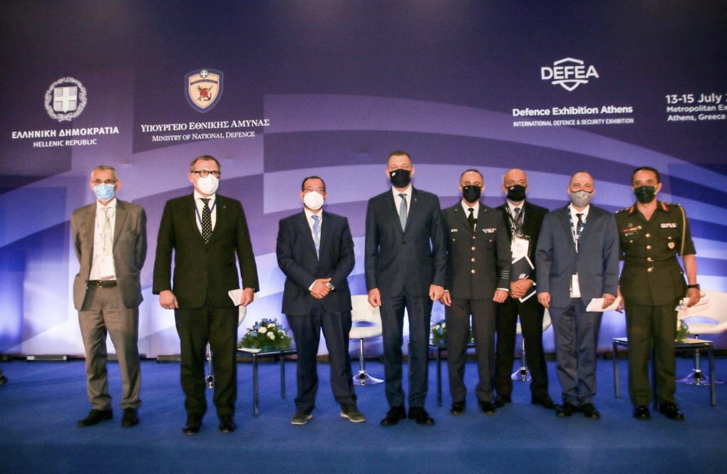 On Tuesday 13 July 2021, on the opening day of the International Defence and Security Exhibition “DEFEA”, the Deputy Minister of National Defence Alkiviadis Stefanis participated in a series of meetings and activities. DEFEA is held at Metropolitan Expo from July 13th to July 15th 2021, under the auspices of the Ministry of National Defence.