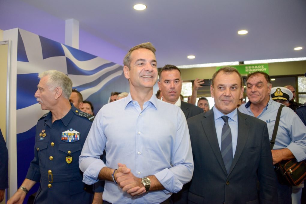 The Prime Minister, Mr. Kyriakos Mitsotakis, visited the Armed Forces Pavilion during the inauguration ceremony of the 84th Thessaloniki International Trade Fair. The Minister of National Defense, Mr. Nikolaos Panagiotopoulos and the military leadership gave a tour of the Pavilion no. 1 to the Prime Minister and informed him about the entire range of the Armed Forces’ contribution activities to the society.