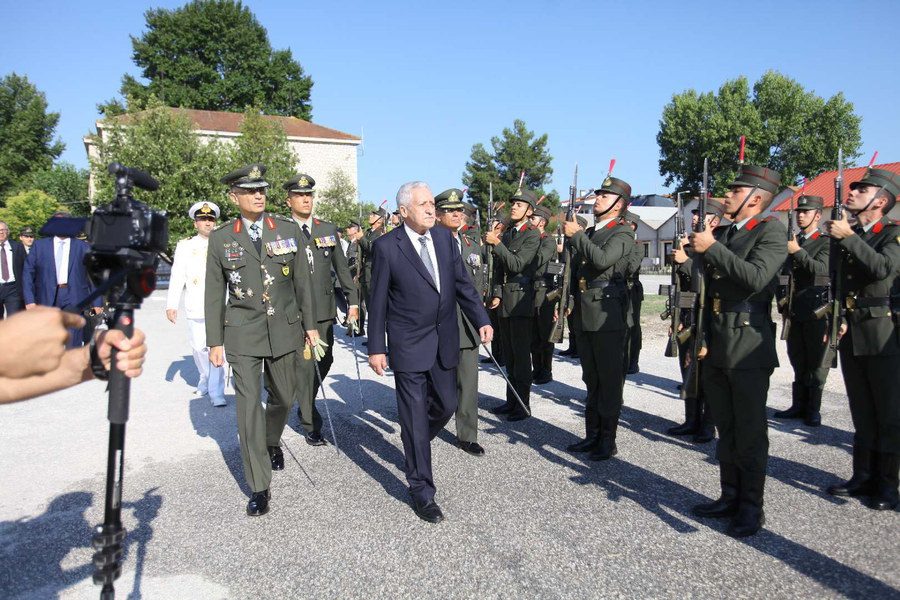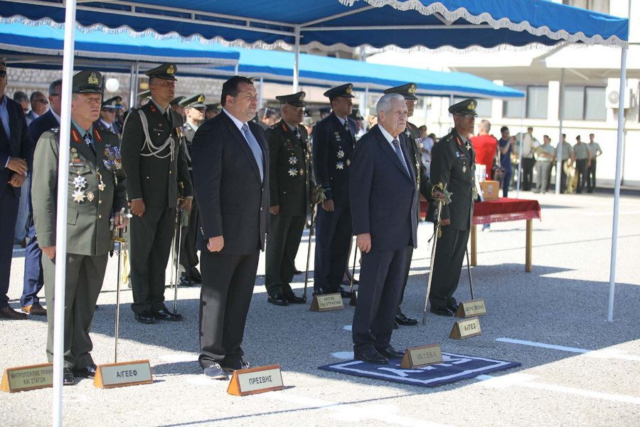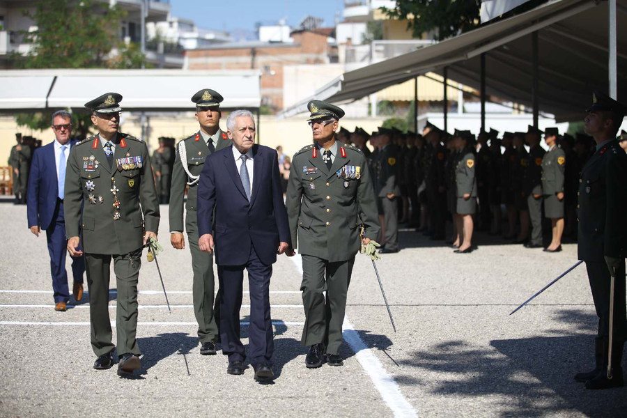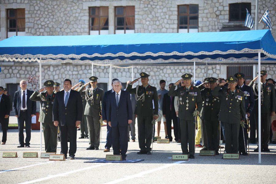 The Alternate Minister of National Defence Fotis Kouvelis accompanied by the Chief of HAGS Lieutenant General Alkiviadis Stefanis visited the Army Career NCO School in Trikala, where he attended the oath taking ceremony of the graduates and awarded them their diplomas. He also attended the opening ceremony of the Logistics building of the Career NCO School. Its construction was completed with a donation of the Republic of Cyprus to the Hellenic Armed Forces. The ceremony was also attended by the Ambassador of the Republic of Cyprus, Kyriakos Kenevezos, and the Chief of the Cypriot National Guard General Staff Lieutenant General Ilias Leontaris, representatives of local authorities as well as relatives and friends of the graduates.
