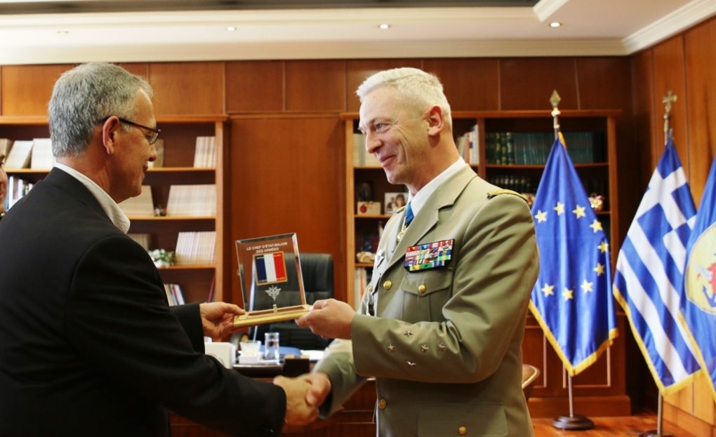The Alternate Minister of National Defence Panagiotis Rigas met, in his office at the Ministry of National Defence, on Friday, 15 February 2019, with the Chief of Armed Forces General Staff of France, General François Lecointre, who pays an official visit to Greece, following an invitation by his Greek counterpart. The meeting was attended by the Chief of HNDGS General Christos Chistodoulou.