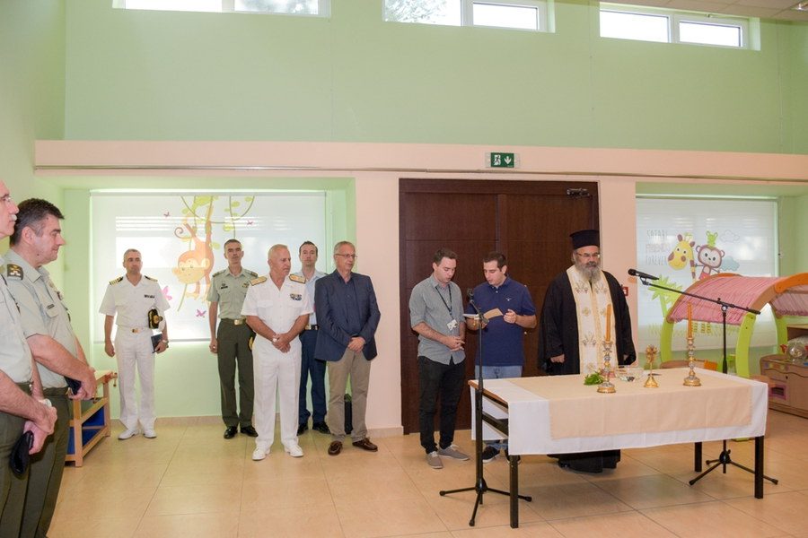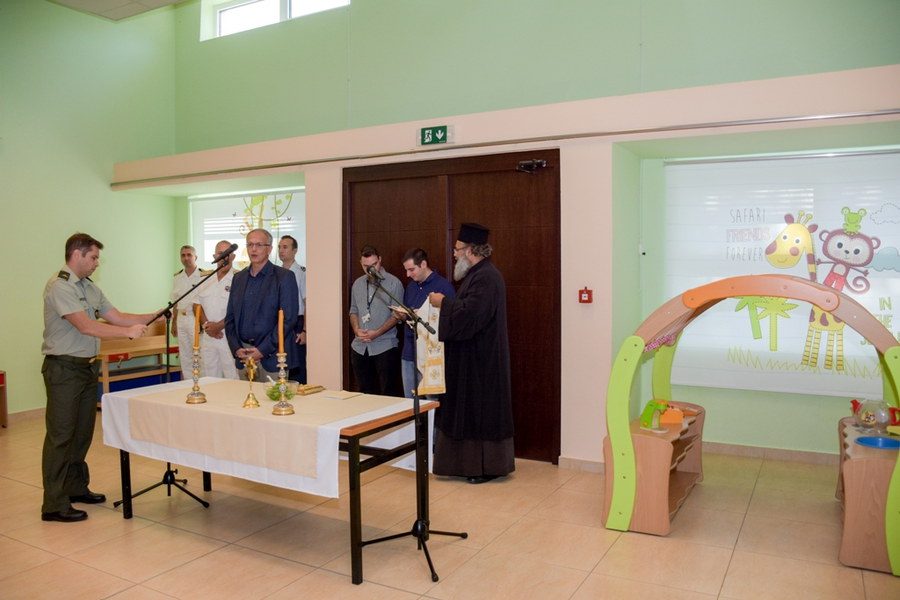 The Alternate Minister of National Defence Panaghiotis Rigas attended today the blessing in the Child Care Station in Papagou Camp (Ministry of National Defence). The ceremony was also attended by the Chief of Hellenic National Defence General Staff, Admiral Evangelos Apostolakis HN and representatives of the General Staffs.
