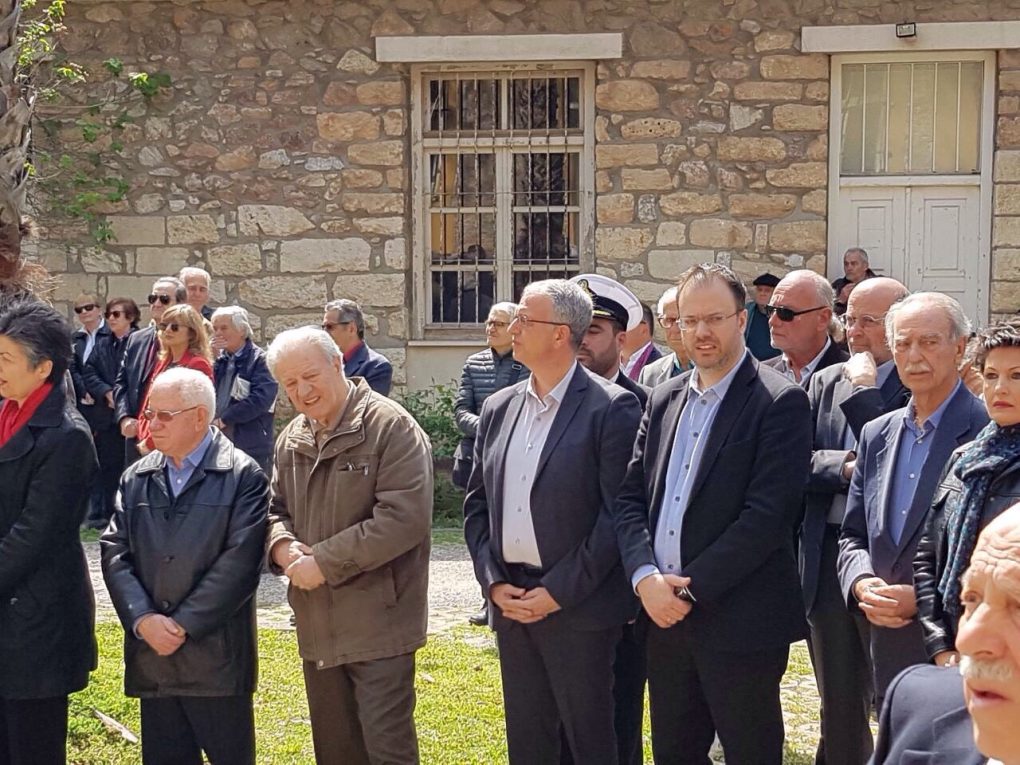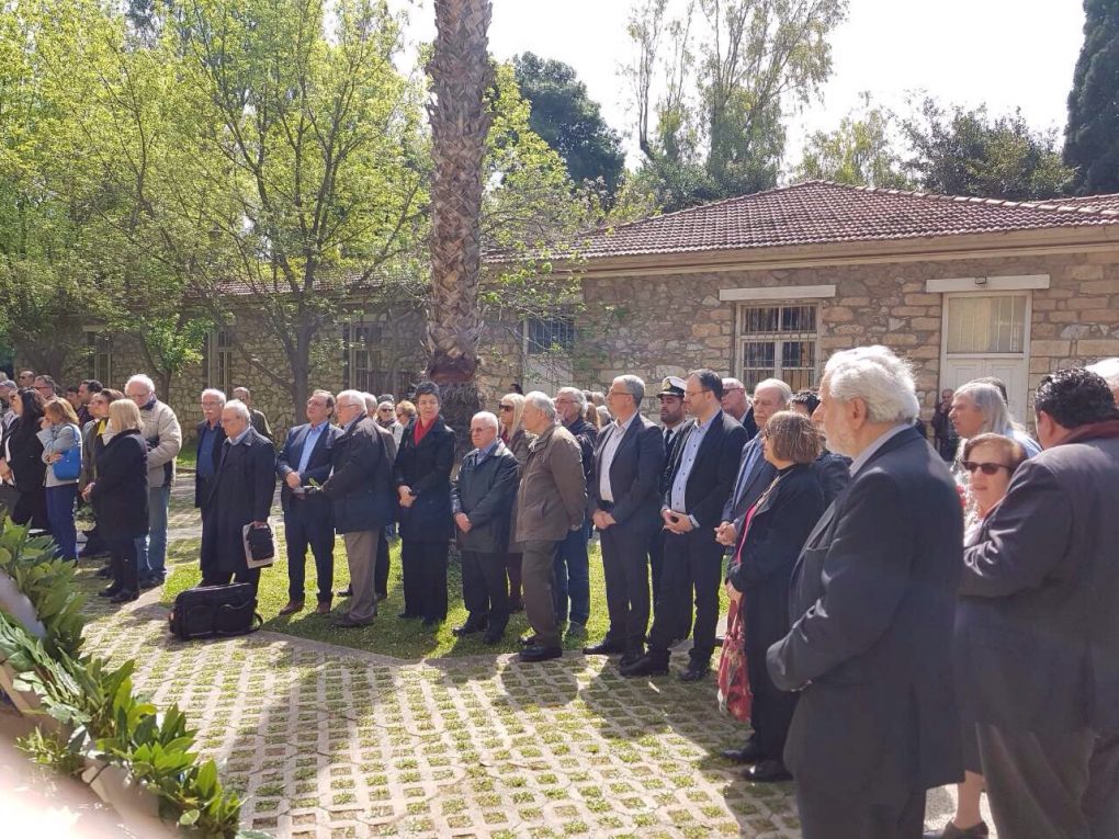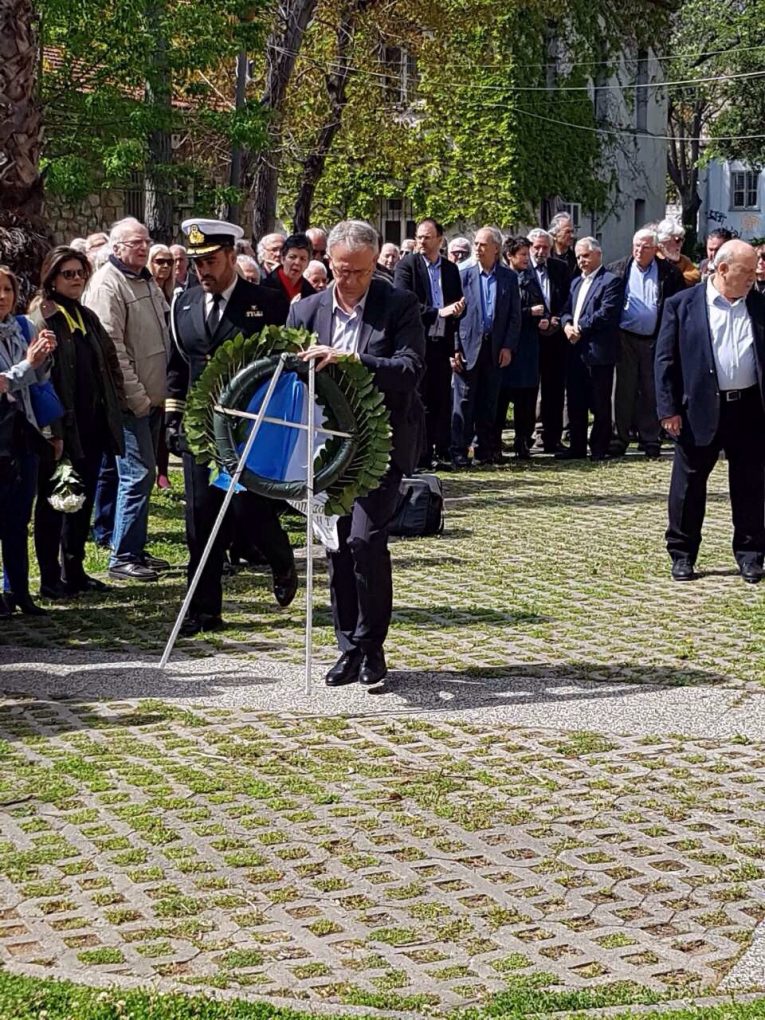 On Sunday, 21 April 2019, the Alternate Minister of National Defence Panos Rigas represented the government at the remembrance ceremony for the 52nd anniversary of the establishment of the military dictatorship on 21 April 1967, organised by the Association of Political Prisoners of the 1967-1974 Dictatorship at the memorial – historical site of the former “EAT-ESA” camp in Eleftherias Park. The Alternate Minister of National Defence laid a wreath at the bust of Spyros Moustaklis.