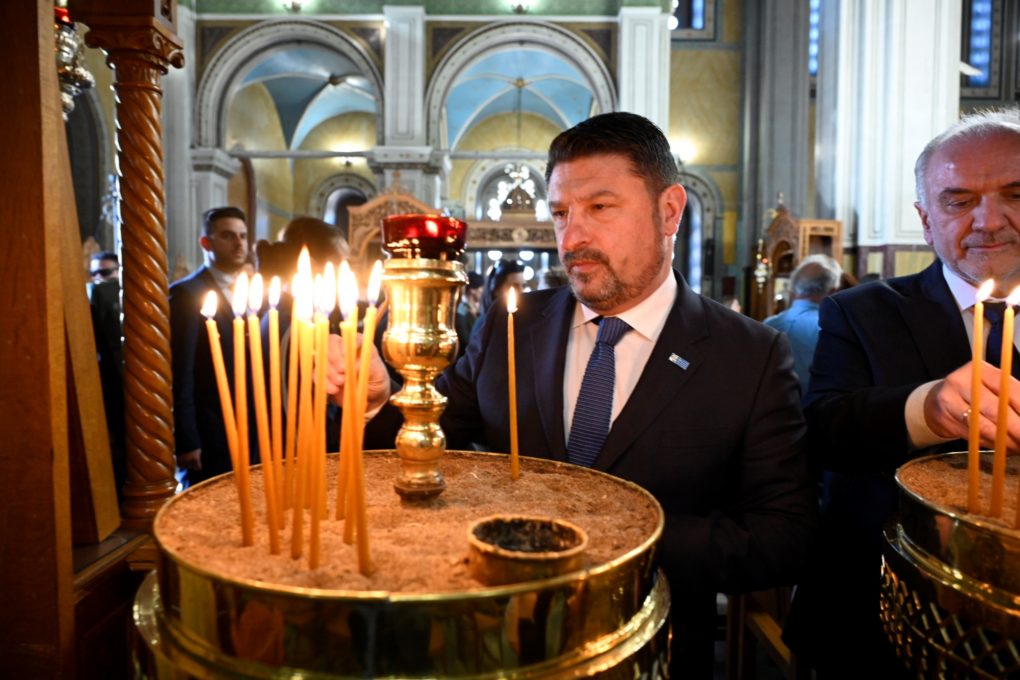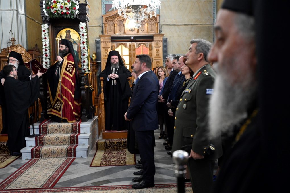 The Deputy Minister of National Defence attended the Doxology at the Metropolitan Church of Aghios Spyridon, officiated by the Reverend Metropolitan of Dimitrias and Almyros Ignatios and co-officiated by the Reverend Metropolitan of Aitolia and Acarnania Damaskinos and the Bishop of Tegea Theoklitos.