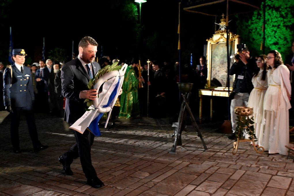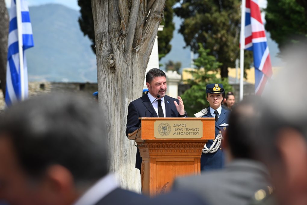 The event was also attended by the MP of Aitolia and Acarnania Mr. Marios Salmas, representing the President of the Hellenic Parliament, the MPs of Aitolia and Acarnania Mr. Konstantinos Karagounis, Mr. Spyridonas-Panagiotis Livanos, Mr. Georgios Varemenos, Mr. Athanasios Moraitis and Mr. Dimitrios Konstantopoulos, the Commander of the Centres’ Command Major General Ioannis Dimitrellos, representing the Chief of the HNDGS, the Regional Governor of West Greece Mr Nektarios Farmakis, the Mayor of the Holy City of Missolonghi Mr Konstantinos Lyros, the Reverend Metropolitan of Dimitrias and Almyros Ignatios, ambassadors and members of diplomatic missions of foreign states in Greece, representatives of the Chiefs of the Army, Navy, Air Force and Police General Staffs, representatives of the Regional and Local Self-administration and others.