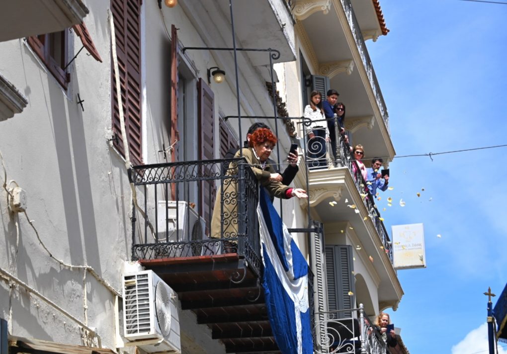 Finally, he attended the representation of the blow up of the Elder Christos Kapsalis and the torturous death of hundreds of women and children who had remained in Missolonghi a few hours after the Exodus, with the participation of the choir of the Municipality of the Holy City of Missolonghi and of students of the city schools.