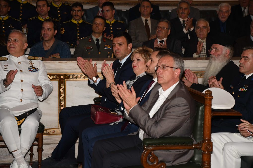 The Alternate Minister of National Defence Panagiotis Rigas and the Deputy Minister Maria Kollia – Tsaroucha, accompanied by the Chief of HNDGS Admiral Evangelos Apostolakis and the Chief of HAGS Alkiviadis Stefanis, attended the Special Celebratory Session of the Academy of Athens in honour of the Hellenic Military Academy (Evelpidon), which celebrates the completion of 190 years since its establishment (1828-2018), on Friday night 19 October 2018, at the Main Building of the Academy of Athens.