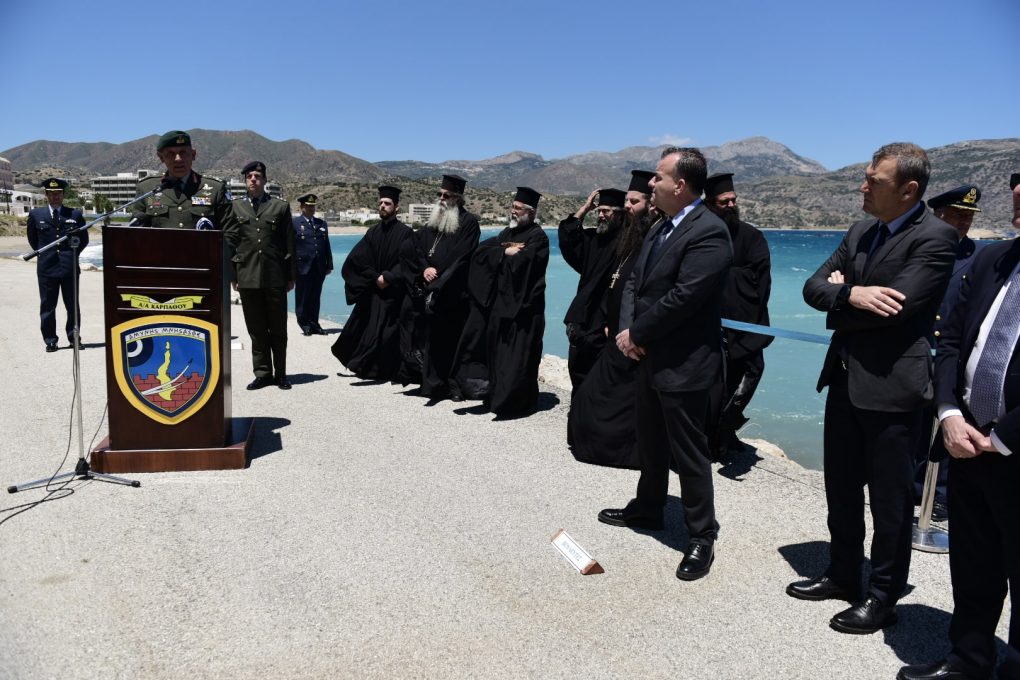The Minister was accompanied by the Chief of HNDGS General Konstantinos Floros and the Chief of HAFGS Lieutenant General Georgios Blioumis. The Dodecanese New Democracy PMs Mr Ioannis Pappas and Mr Vasilios Ypsilandis, the Provincial Governor of Karpathos and of the heroic Kasos Island Ms Kalliopi Nikolaidou, His Eminence the Metropolitan Bishop of Karpathos and Kasos Mr Amvrosios, the brother of the deceased Mr Filippos Iliakis and representatives of the Local Self-government headed by the Deputy Mayor of Karpathos Mr Ioannis Lyristis also attended the event.