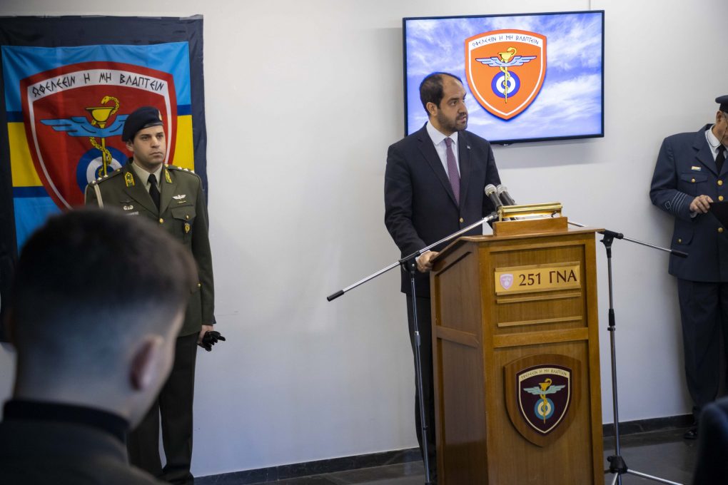 On Tuesday, 12 December 2023, the Deputy Minister of National Defence Mr Ioannis Kefalogiannis attended the Naming Ceremony of an Amphitheatre of the 251 Air Force General Hospital to “Major General Evangelia Andreadaki” Amphitheatre, who prematurely lost her life while on duty, during a mission in Libya.