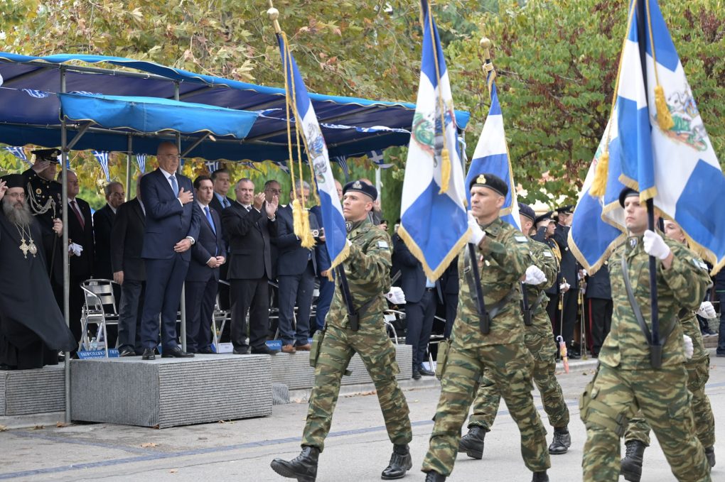 Subsequently, Mr Dendias observed the march of the 96 Higher National Guard Battalions Command detachments, as well as of its Army Band, of Members of the National Guard, of students of the primary and secondary education, of students of the Merchant Marine Academy of Engineers on Chios, of members of associations etc. After the end of the march, the Minister of National Defence made the following statement: