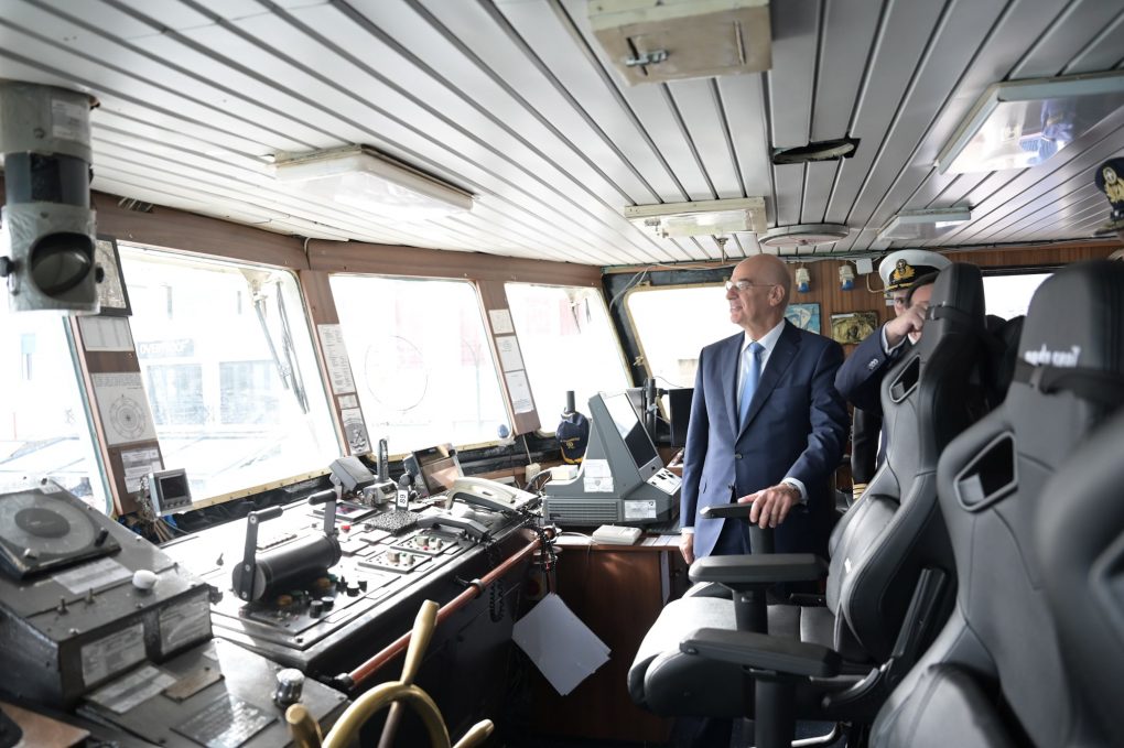 Finally, Mr Dendias visited the POLEMISTIS Gunboat at the Port of Chios, where he was briefed by its Commander Lieutenant Commander Rodamanthys Vaskakis on its mission.