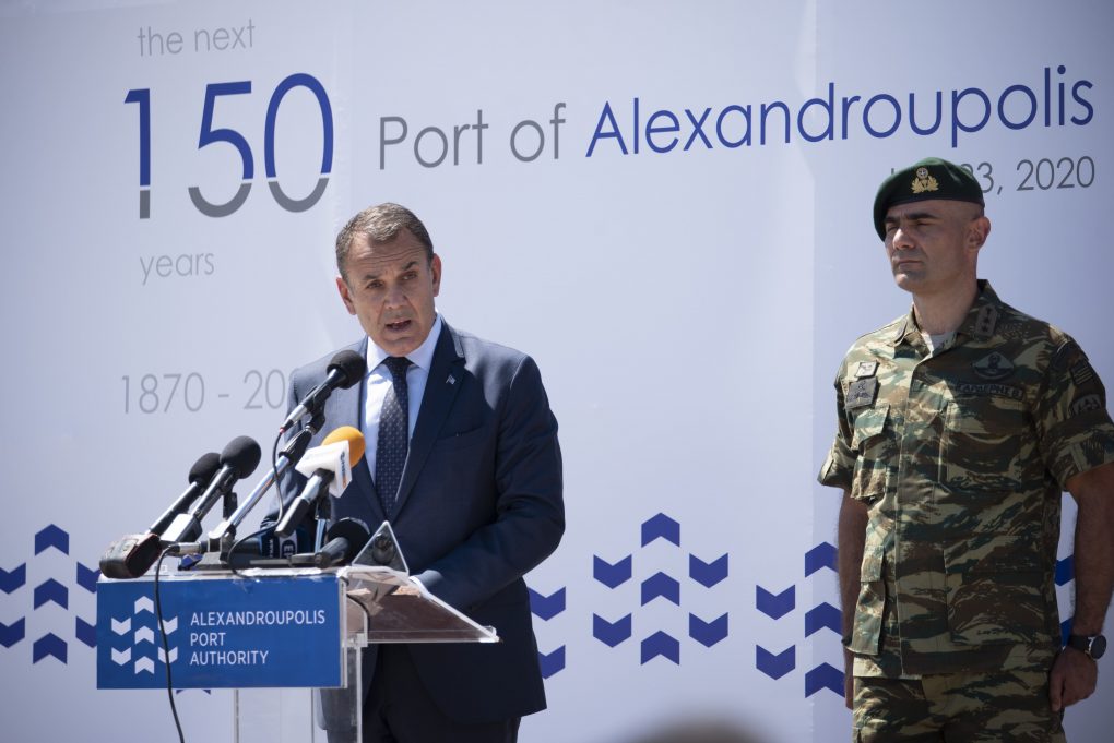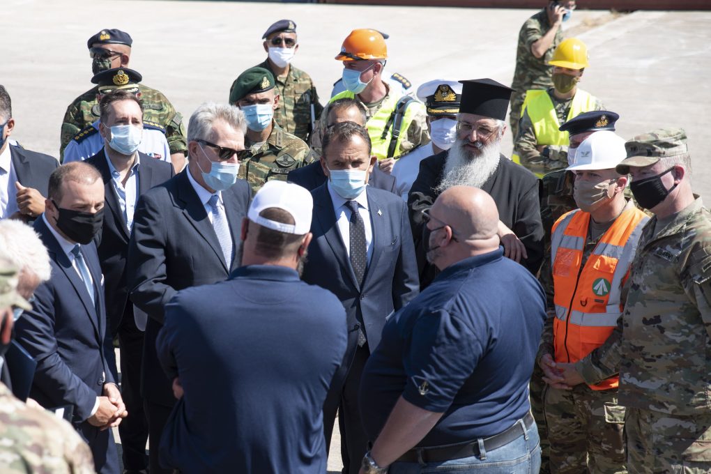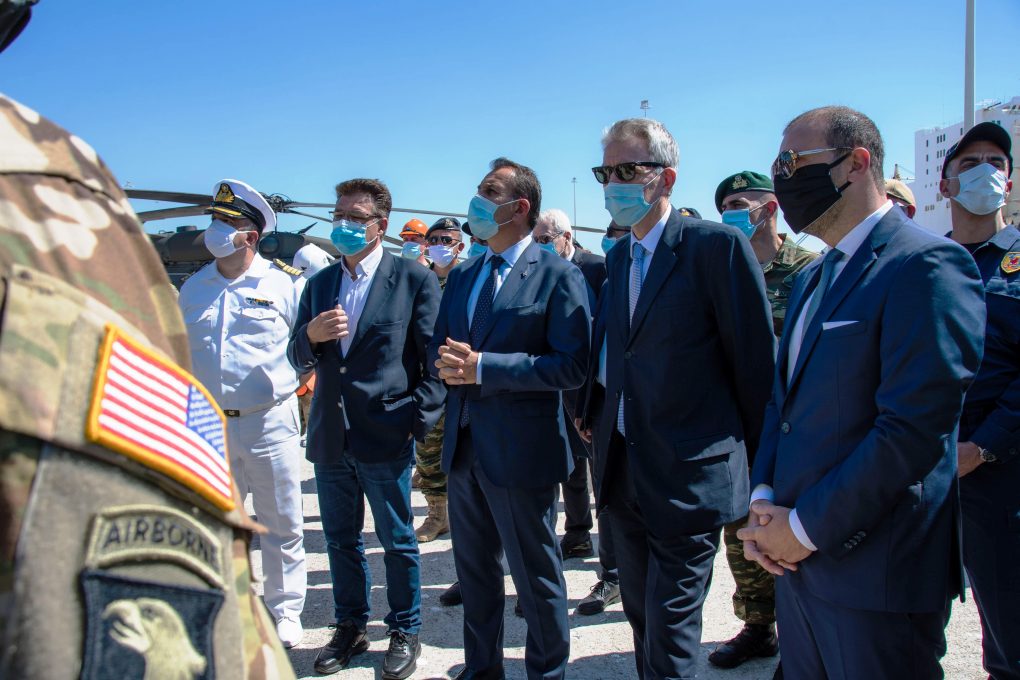 The Minister of National Defence Mr. Nikolaos Panagiotopoulos visited today, Thursday June 23rd 2020, the port of Alexandroupolis, together with the US Ambassador in Athens, Mr. Goeffrey R. Pyatt, in order to attend the activities of the 101st Airborne Division of the USA in the course of the reception, organization and advancement of elements in support of the “Atlantic Resolve” operation. Moreover, the 150th year of the port’s operation was celebrated.