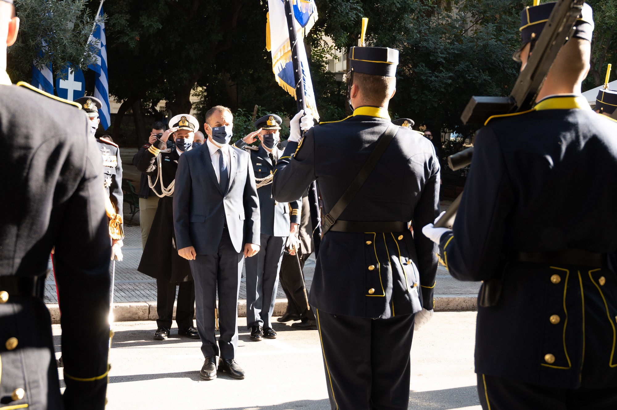 Defence Minister Nikolaos Panagiotopoulos attends the celebrations on the Armed Forces’ Day