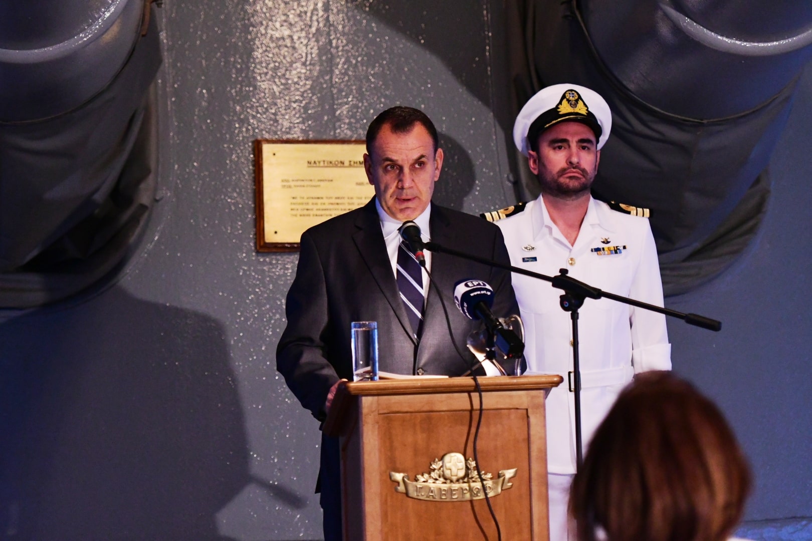 Defence Minister Nikolaos Panagiotopoulos attends the meeting of the Parliamentary Committee on Defence and Foreign Affairs in the Ministry of National Defence