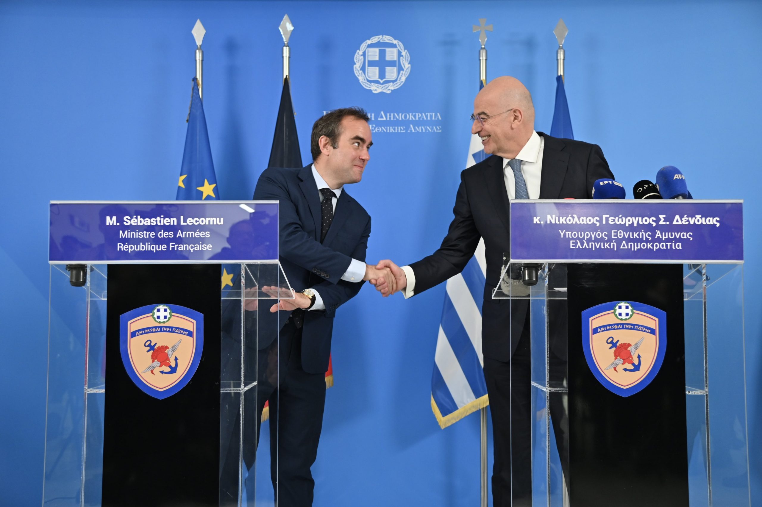 On Monday, 14 April 2025, the Minister of National Defence Nikos Dendias met with the Minister of Armed Forces of France, Sébastien Lecornu, who made