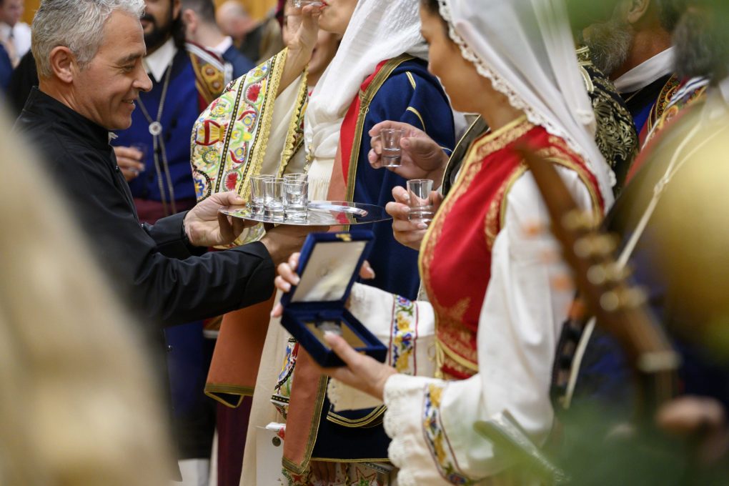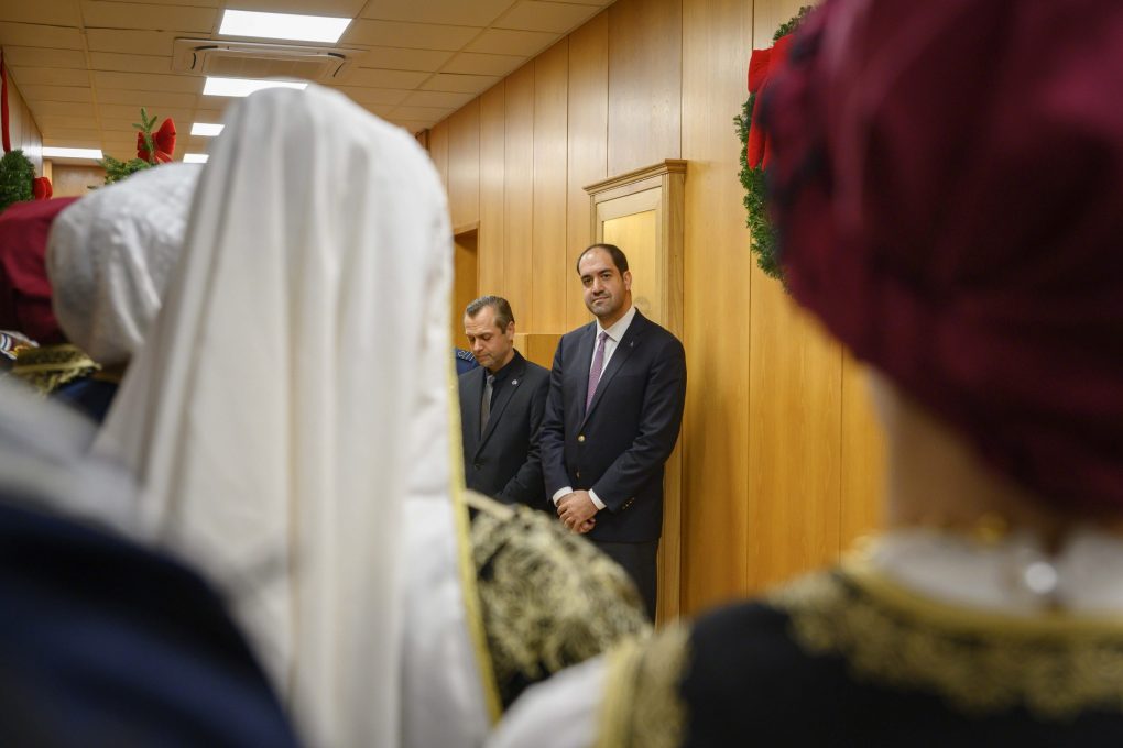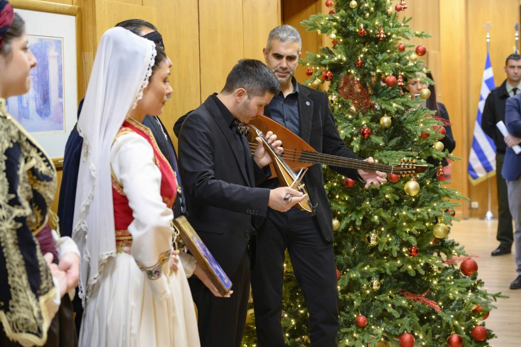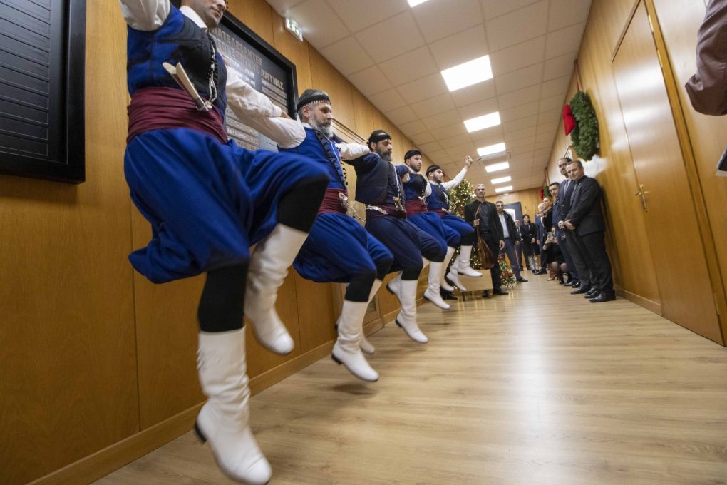 Mr Kefalogiannis talked with the dancers and musicians, gave them wishes for a Merry Christmas, presented them with symbolic gifts, and congratulated them for the long-term contribution of the Group to tradition and culture.