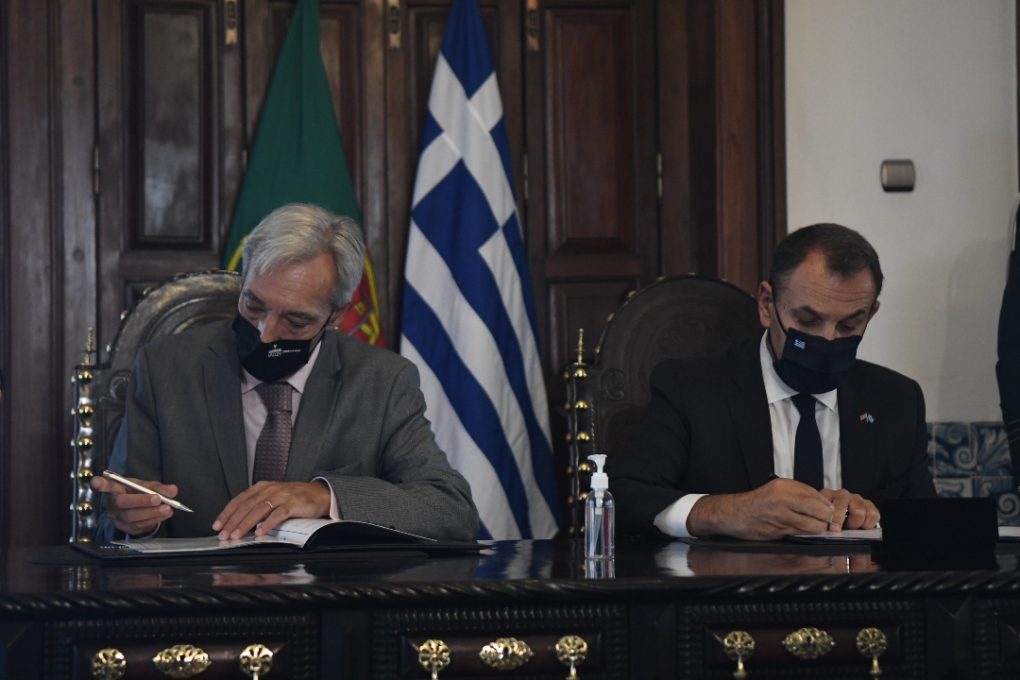 JOÃO GOMES CRAVINHO: “I am particularly pleased with the meeting with my Greek counterpart; there are a lot of cooperation issues of common interest, while the conclusion of a Bilateral Defence Cooperation Agreement offers an additional tool that would allow the deepening of relations between both countries in the defence sector. Despite the climate of tension that, as you know, prevails in the Eastern Mediterranean, the Greek Minister maintained his will and paid the visit with the intention of signing the bilateral agreement and promoting our bilateral dialogue. We share numerous issues that we considered today, such as our participation in the plans of the Permanent Structured Cooperation (PESCO), as well as our participation in NATO, which is at a stage of significant development. At the same time, we also share many concerns about either issues related to regional threats or issues related to opportunities for the development of cooperation between our defence industries.