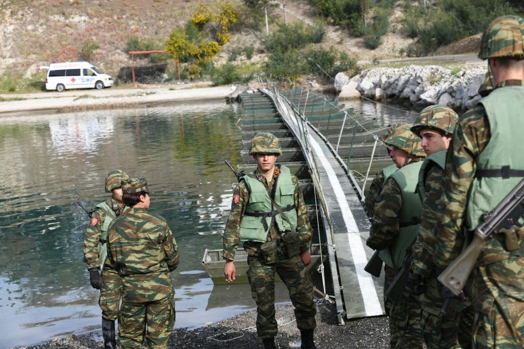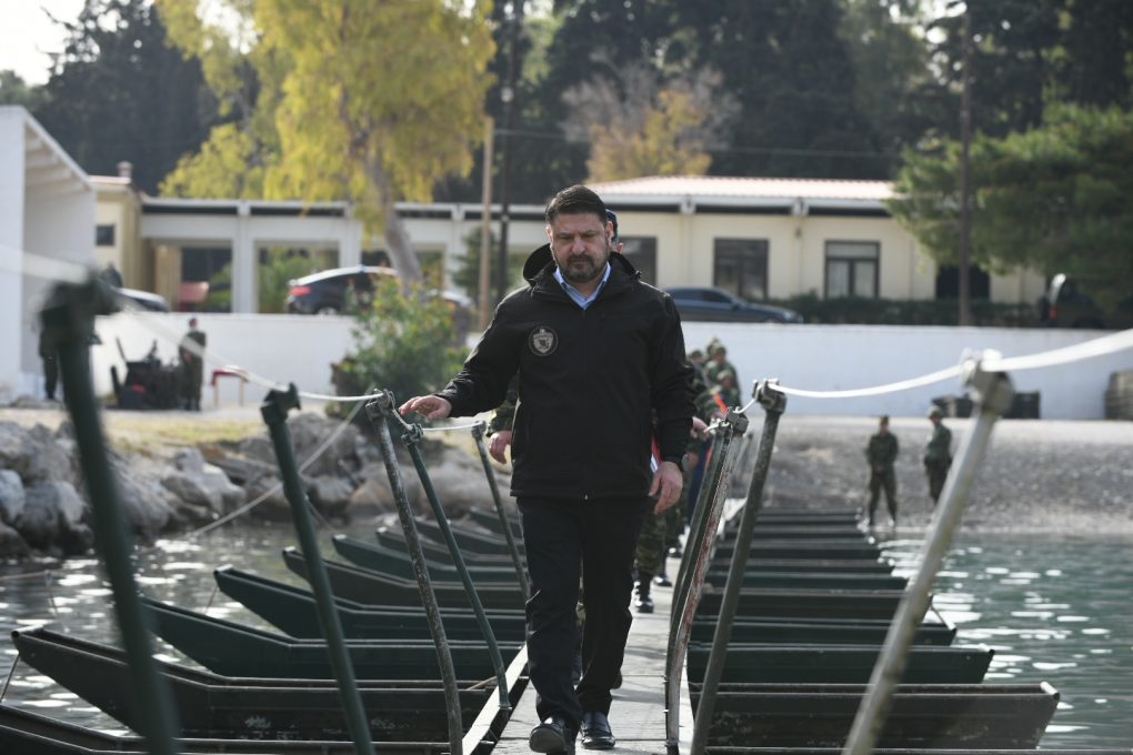 Mr. Chardalias watched subjects of training of the Engineer School and 747 Special Engineer Battalion personnel among which the construction of a footbridge, light tactical raft crossing (for personnel, materials and assets transport), as well as the training (education and training) of Engineer Reserve Officers Candidates. He also watched a demonstration of Special Battalion static materials, devices and materials of explosives disposal, as well as rescue techniques and dogs use in search and rescue.