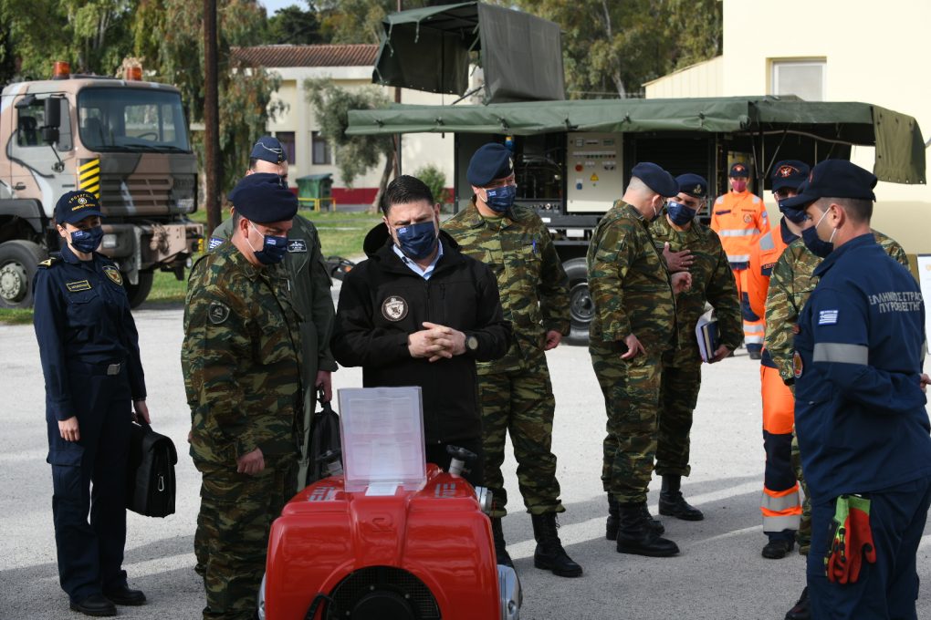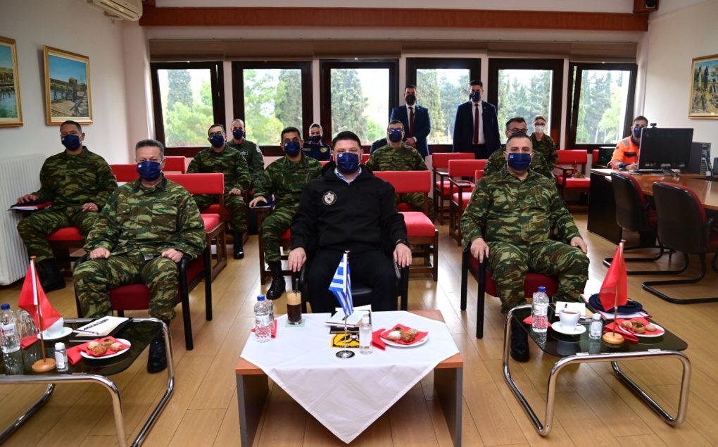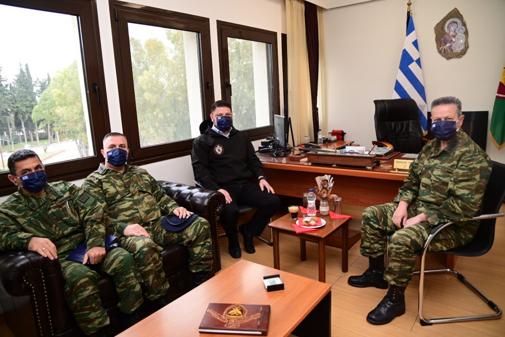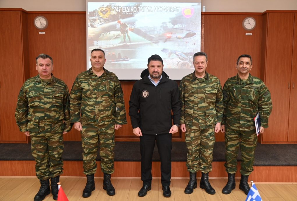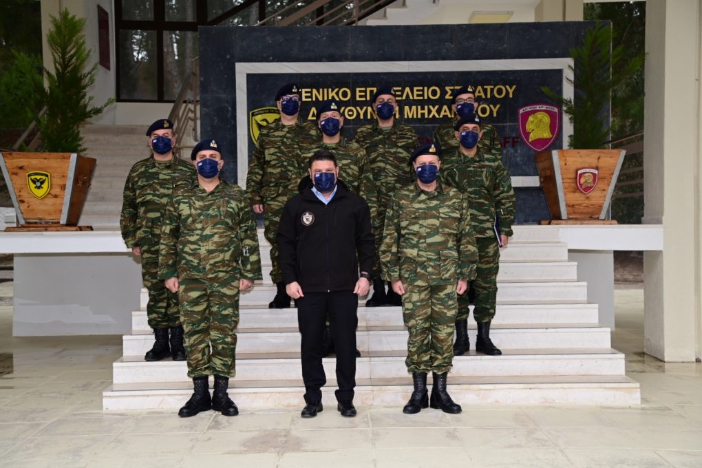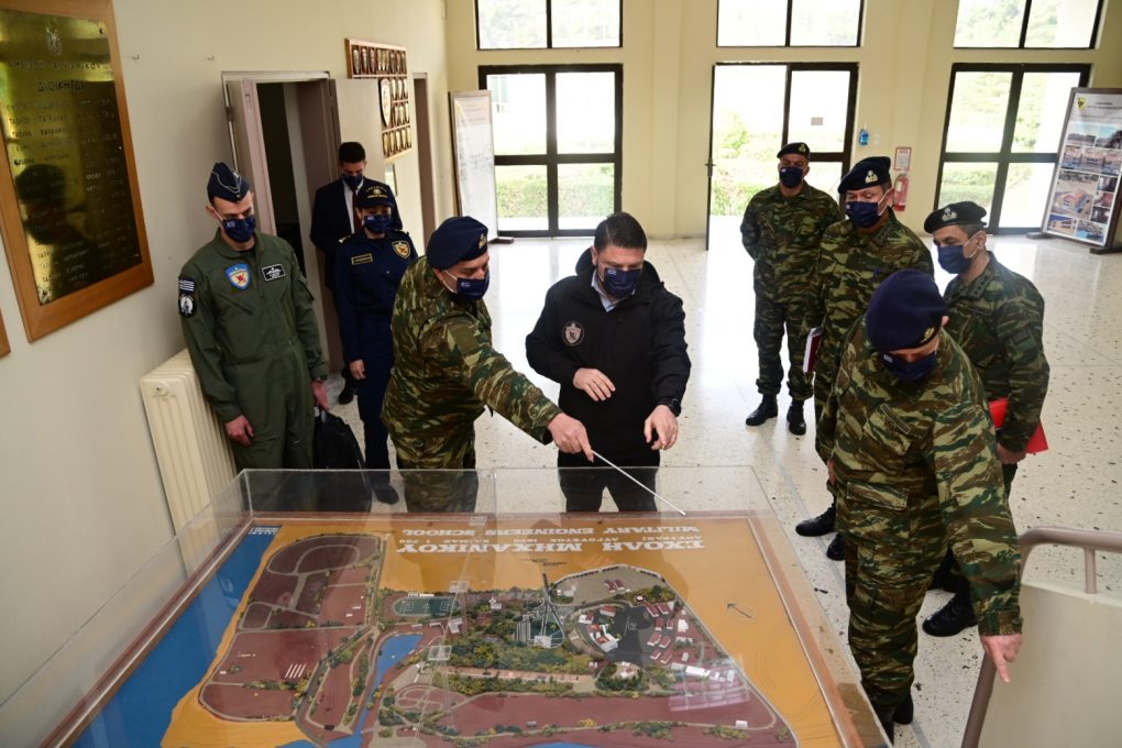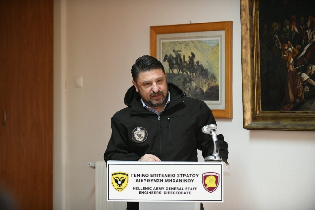 In the context of the visits, Mr. Chardalias was briefed by the Commanders, Brigadier General Charalambos Akrivos (Engineer School) and Lieutenant Colonel Nikolaos Papamargaritis (747 Special Engineer Battalion), on the School and Battalion’s organisation, mission, work and current activities. He also toured their premises and conversed with members and soldiers.