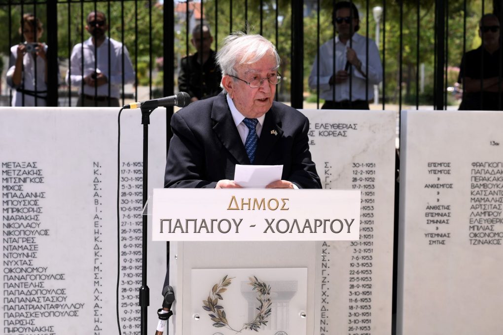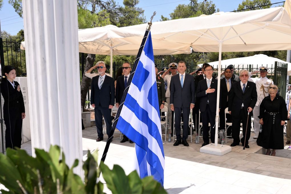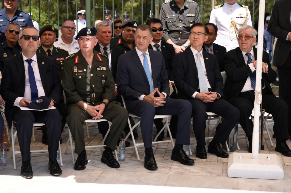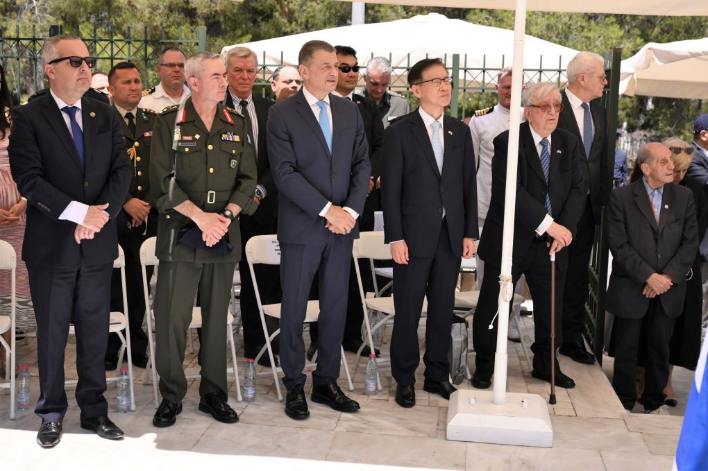 In the Tomb of the Greek Fallen Men, at Aghios Georgios Square, Papagos-Holargos Municipality, a memorial service took place. After that, wreaths were laid by the Minister of National Defence, the Ambassador of the Korean Republic Mr. Jung II Lee, the Ambassador of the Philippines Mr. Giovanni Palec, the Chargé d’ Affaires of the Canadian Embassy Mr. Walter Bermyck, the British Defence Attaché Captain Alex Bush, the President of the Pan-Hellenic Veterans Association of Korea (ret.) Stylianos Drakos, the President of the Air Force Veterans Association Lieutenant General (ret.) Konstantinos Tzavellas and the Mayor of Papagos-Holargos Mr. Ilias Apostolopoulos.