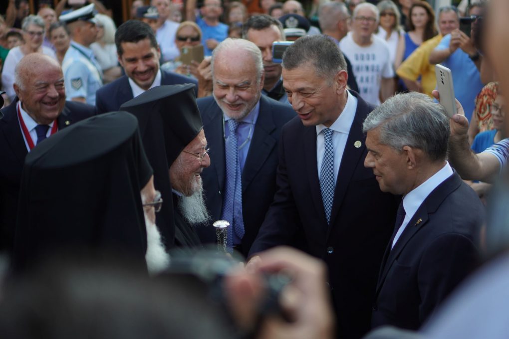 Next, the Minister observed the inauguration ceremony of the Municipal Theatre of Volos, officiated by the Ecumenical Partiarch.