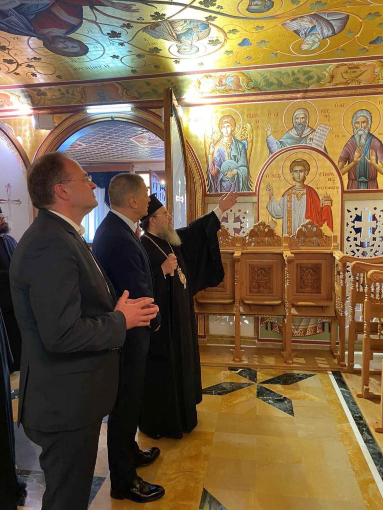 On the road to Aghion Oros, the Minister of National Defence visited the Church of Saint Arsenios the Cappadocian.