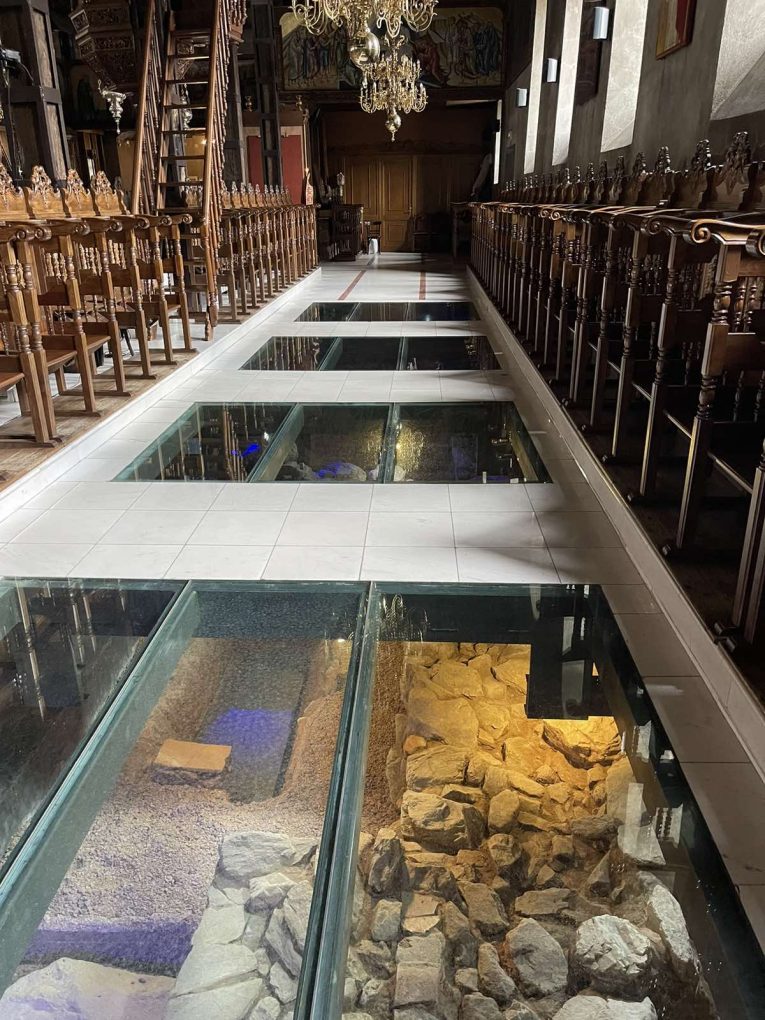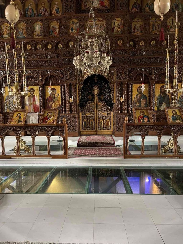 Before departing for Aghion Oros, he visited and prayed at the Historic Metropolitan Church of Aghios Stefanos of Arnaia, the only one in Greece that is also a Museum. It has a glass floor, with three excavation levels, which depict the historic phases of its worship use, from the beginning of its construction as an Old Christian Basilica of the 5th century until 1812, possessing its current form.