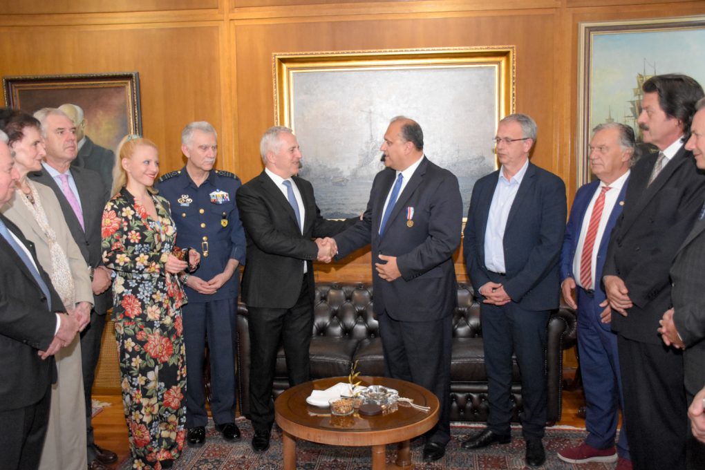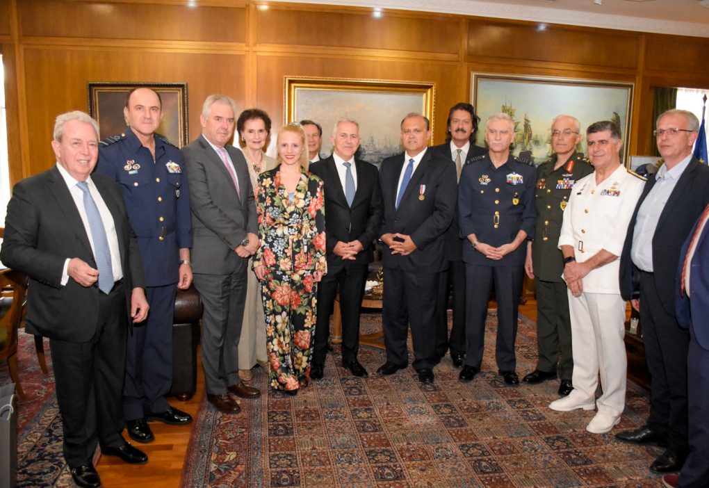 After the meeting, the Minister of National Defence presented the President of AHI, Mr. Nick Larigakis, with the Commendation Medal for Merit and Honour, as an acknowledgement of his action for the benefit of the Hellenic Armed Forces. The presentation was attended by the Alternate Minister of National Defence Panos Rigas, the Chief of Hellenic National Defence General Staff, General Christos Christodoulou, the Chief of Hellenic Navy General Staff, Vice Admiral Nikolaos Tsounis, the Chief of Hellenic Army General Staff, Lieutenant General Georgios Kampas and the Chief of Hellenic Air Force General Staff Lieutenant General Georgios Blioumis.