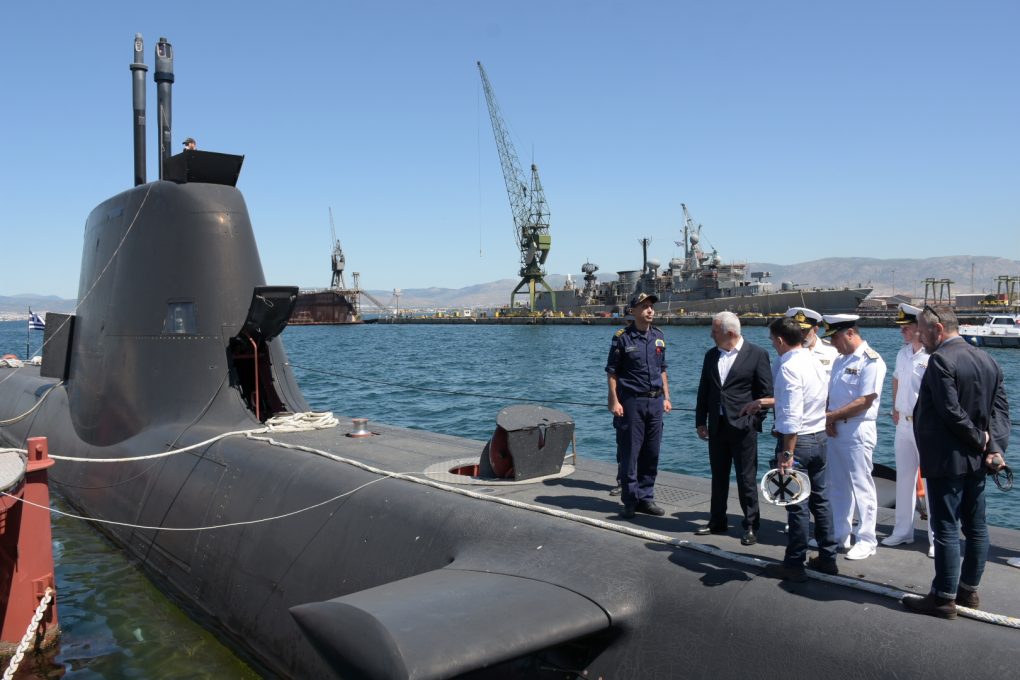 The Minister of National Defence discussed the progress of the current programmes of the Hellenic Navy, focusing mostly on type-214 submarines and Roussen-class missile boats, and met with employees.