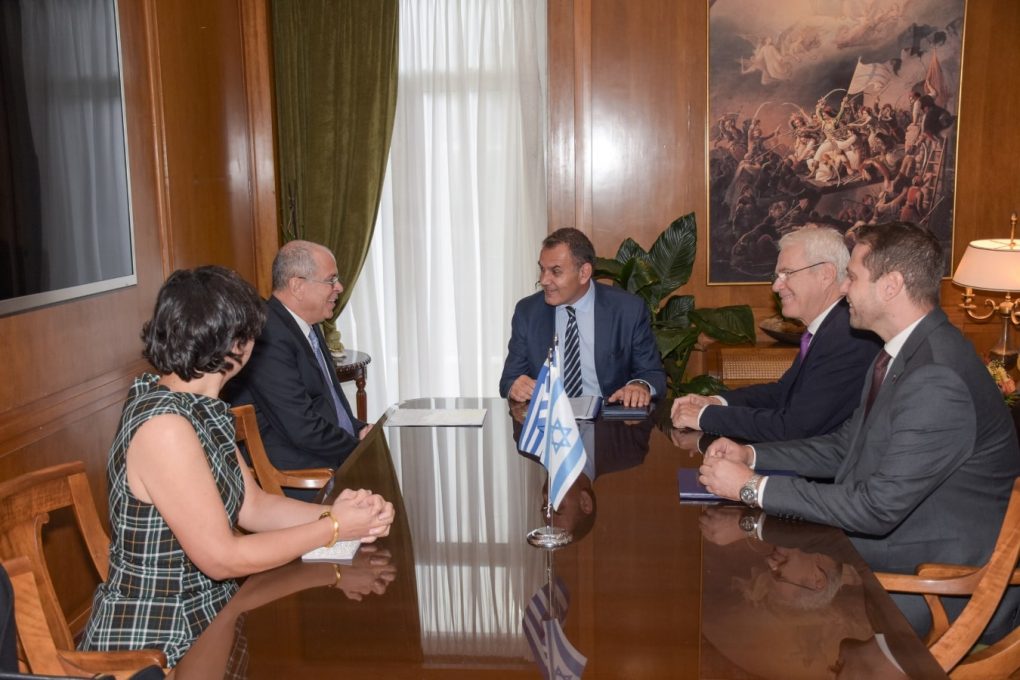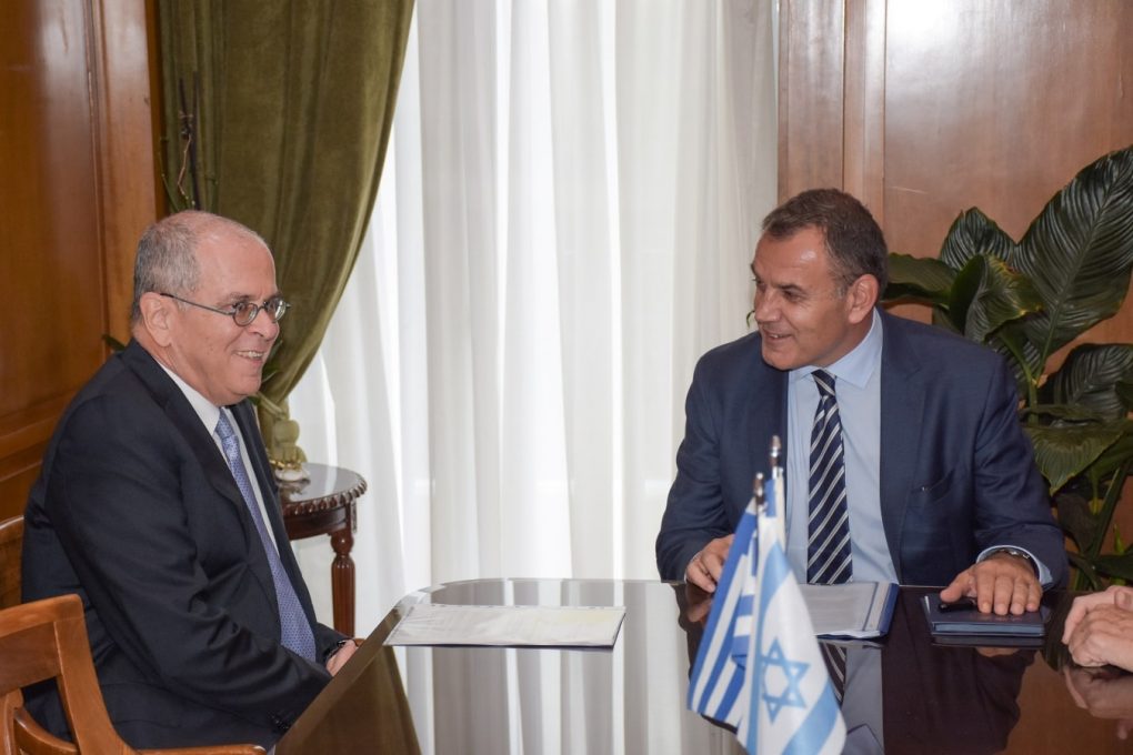 The Minister of National Defence Mr. Nikolaos Panagiotopoulos met today with the new ambassador of Israel to Greece, Mr. Yossi Amrani and discussed matters of further enhancement and deepening of the bilateral cooperation in the defence and defence-technical field, as well as the security challenges with regard to the East Mediterranean and the wider region.