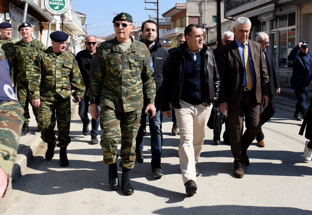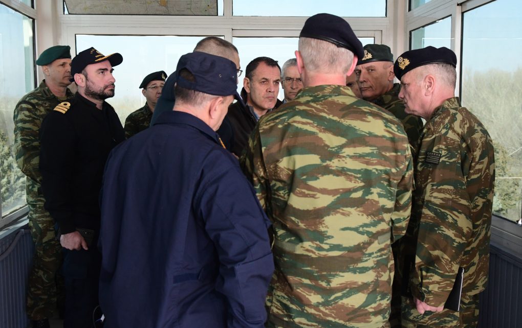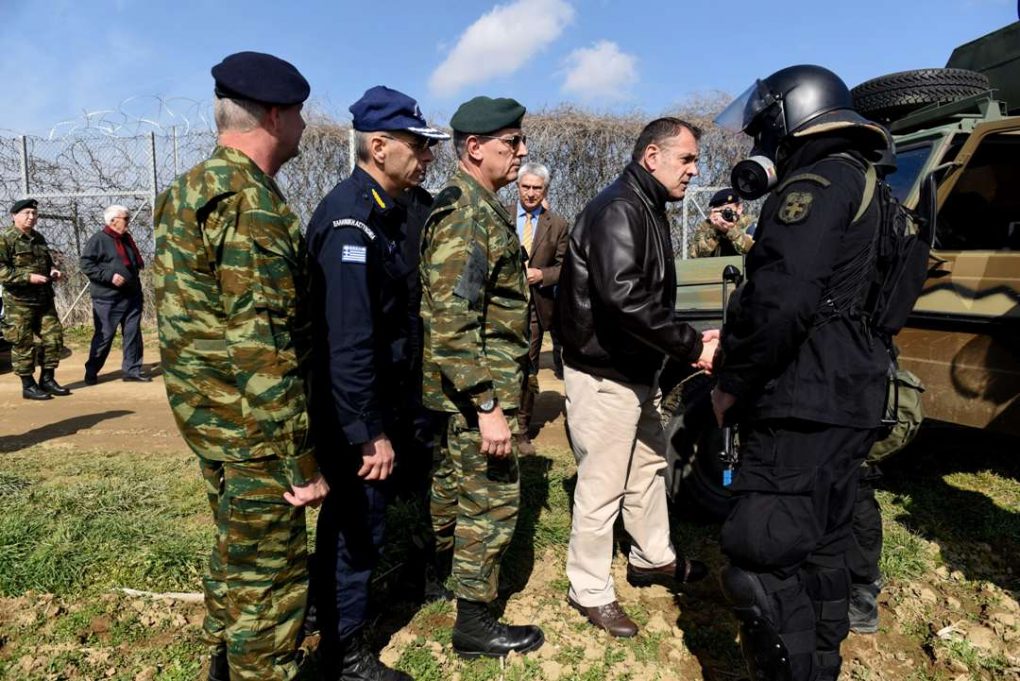 The Minister of National Defence Mr. Nikolaos Panagiotopoulos visited and inspected today, Sunday 1 March 2020, the border guard, starting from Surveillance Outpost 1 in Kastanies and moving along the borderline at Evros.