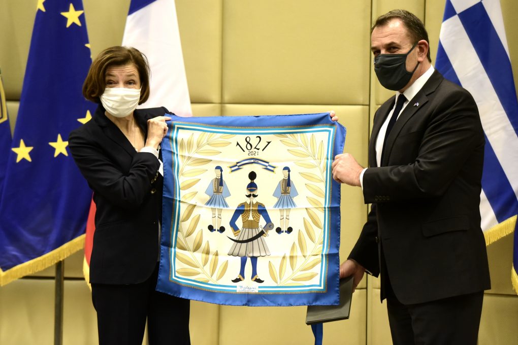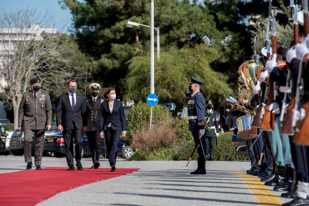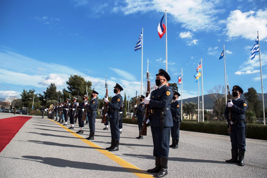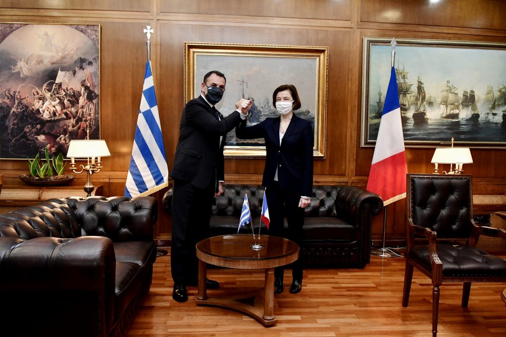 On Monday, 25 January 2021, the Minister of National Defence Mr. Nikolaos Panagiotopoulos welcomed the French Minister of Defence, Ms. Florence Parly, to the Ministry of National Defence.