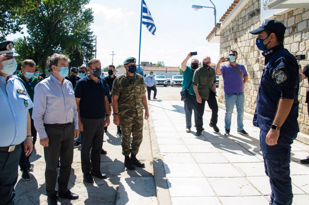 The Minister of National Defence Mr. Nikolaos Panagiotopoulos and the Minister of Citizen Protection Mr. Michalis Chrysochoidis, along with the HNDGS/Chief General Konstantinos Floros and the Greek Police Chief General Michail Karamalakis visited today, Friday 20 August 2021, the Area of Responsibility of D’ Army Corps in Evros.