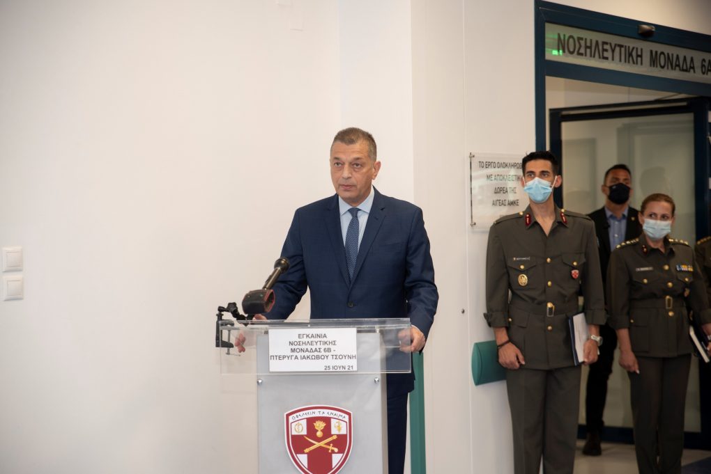 The Minister of National Defence Mr. Nikolaos Panagiotopoulos visited today, Friday 25 June 2021, the 401 General Military Hospital of Athens, to inaugurate new wards at the Nursing Unit 6B.