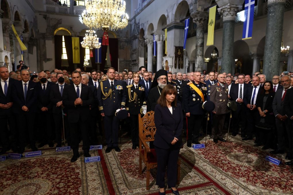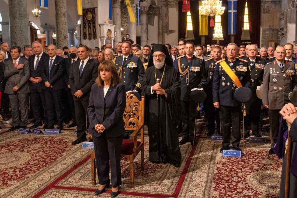The Minister of National Defence Mr. Nikolaos Panagiotopoulos, representing the Government at the celebrations held in the city of Thessaloniki for the 110th anniversary since its liberation received today, Wednesday 26 October 2022, Her Excellency the President of the Hellenic Republic Ms. Katerina Sakellaropoulou, at the Holy Temple of Agios Dimitrios in Thessaloniki where a doxology was officiated by His Eminence the Metropolitan of Thessaloniki Anthimos.