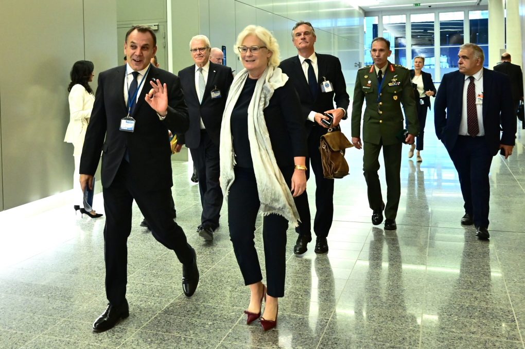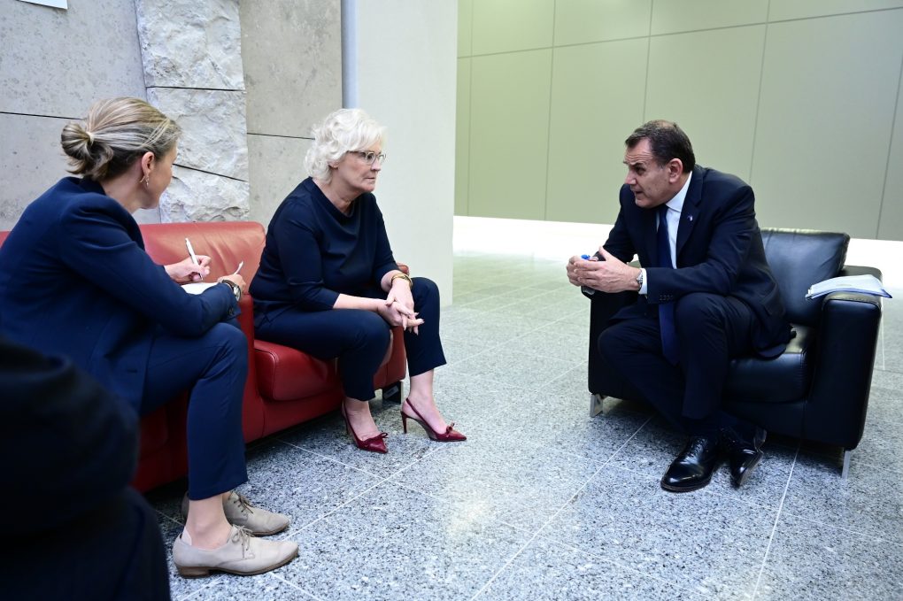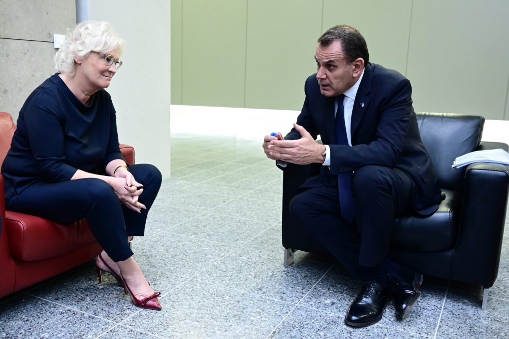 At the sidelines of the meeting’s sessions, Mr. Panagiotopoulos had meetings with the Defence Ministers of Germany Ms. Christine Lambrecht, France Mr. Sebastien Lécornu, Italy Mr. Lorenzo Guerini, Bulgaria Mr. Dragomir Zakov and Montenegro Mr. Rasko Konjevic, in which they discussed the developments in Ukraine, the security situation in Eastern Mediterranean and the further reinforcement of the bilateral defence cooperation.