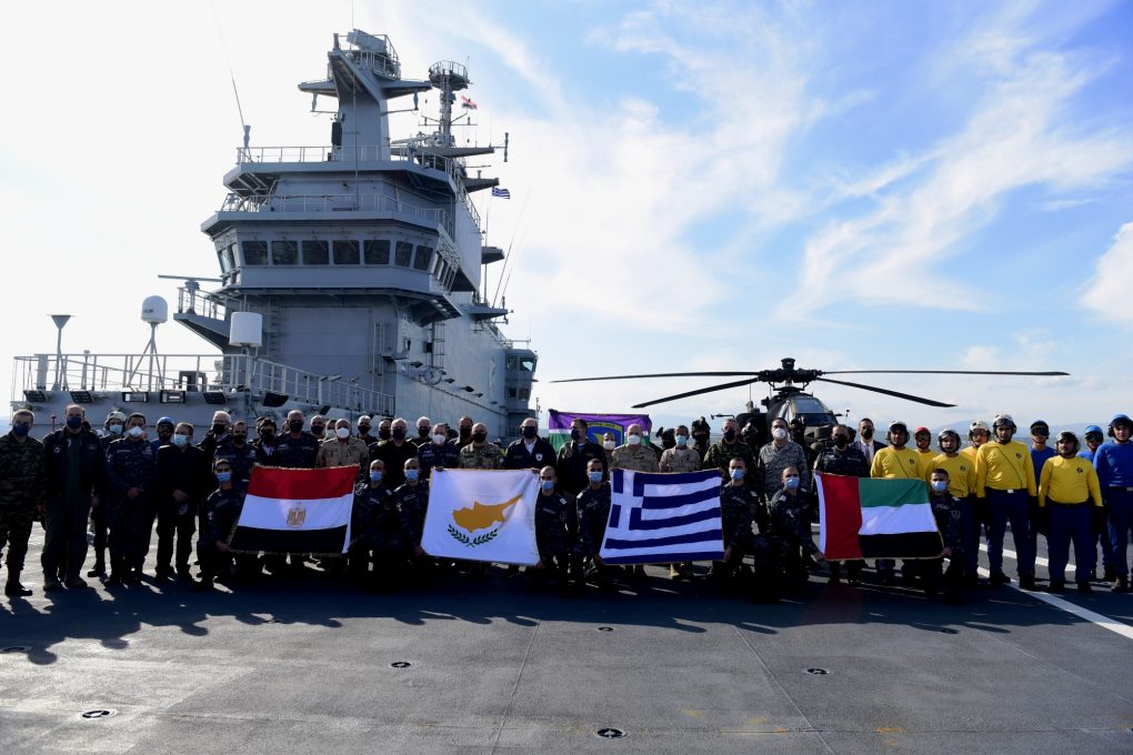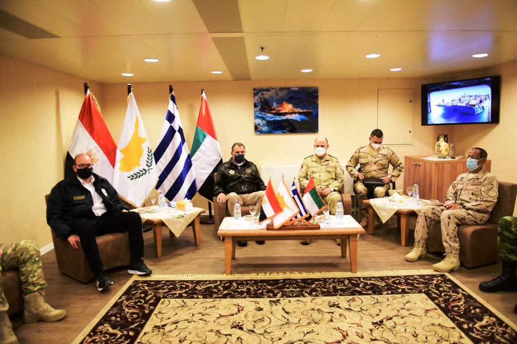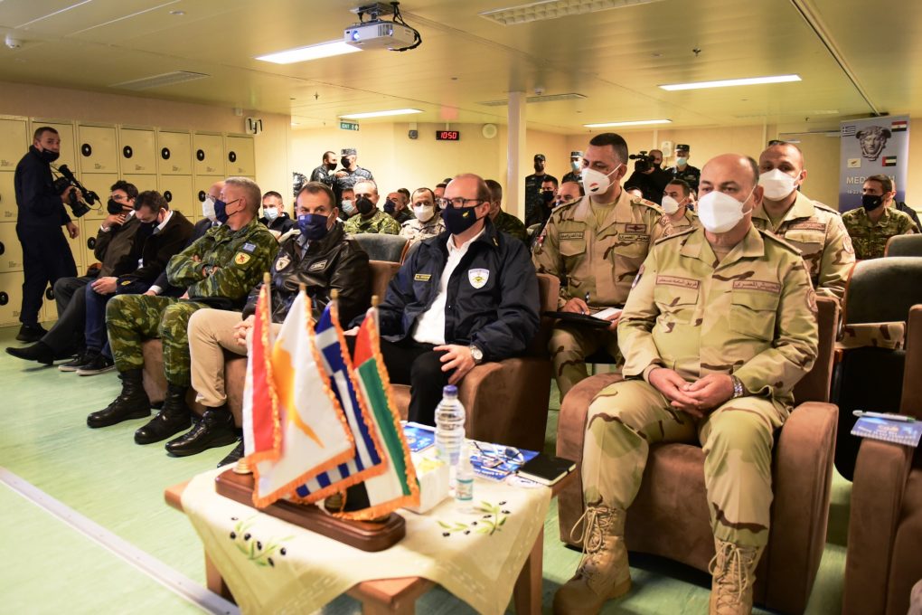 The exercise was also attended by the Defence Minister of the Republic of Cyprus Mr. Charalambos Petridis, Egypt’s Armed Forces General Staff/Chief Lieutenant General Osama Roshdy Askar, the National Guard General Staff/Chief Lieutenant General Dimokritos Zervakis, the United Arab Emirates’ Armed Forces/Chief Lieutenant General Hamad M. Thani Al-Rumaithi, the French Navy Commander of the Mediterranean and the Black Sea Vice Admiral Gilles Boidevezi, representing the French Chief of Defence, the Deputy Chief of the Royal Saudi Arabian Navy Major General Mohammed Abdulrahman Alghuraybi, representing the Chiefs of the Armed Forces and of the Navy of the Kingdom of Saudi Arabia.