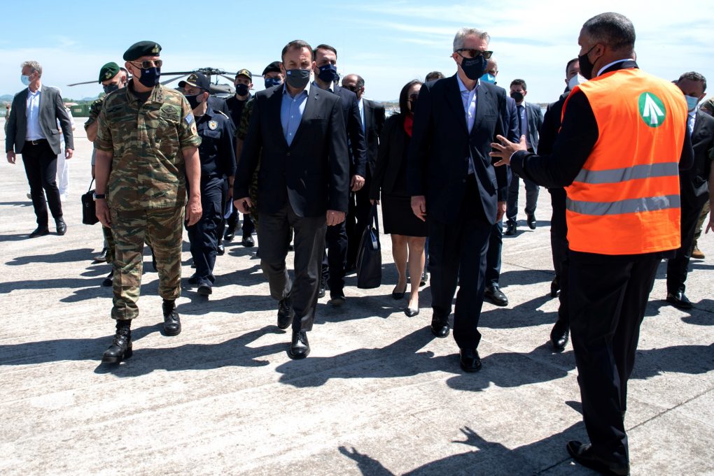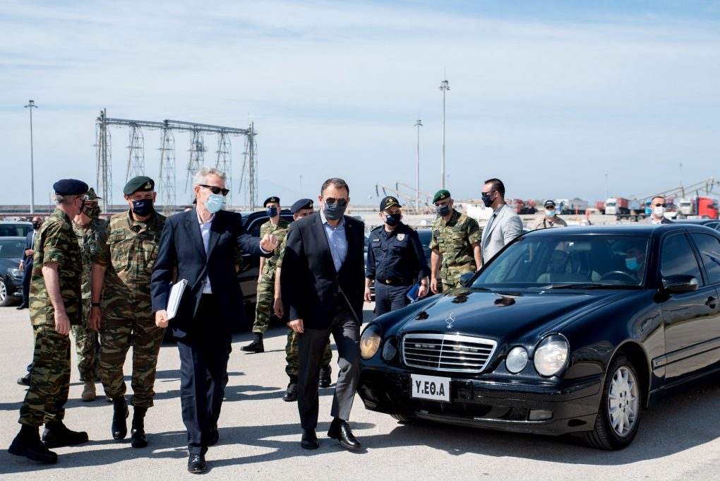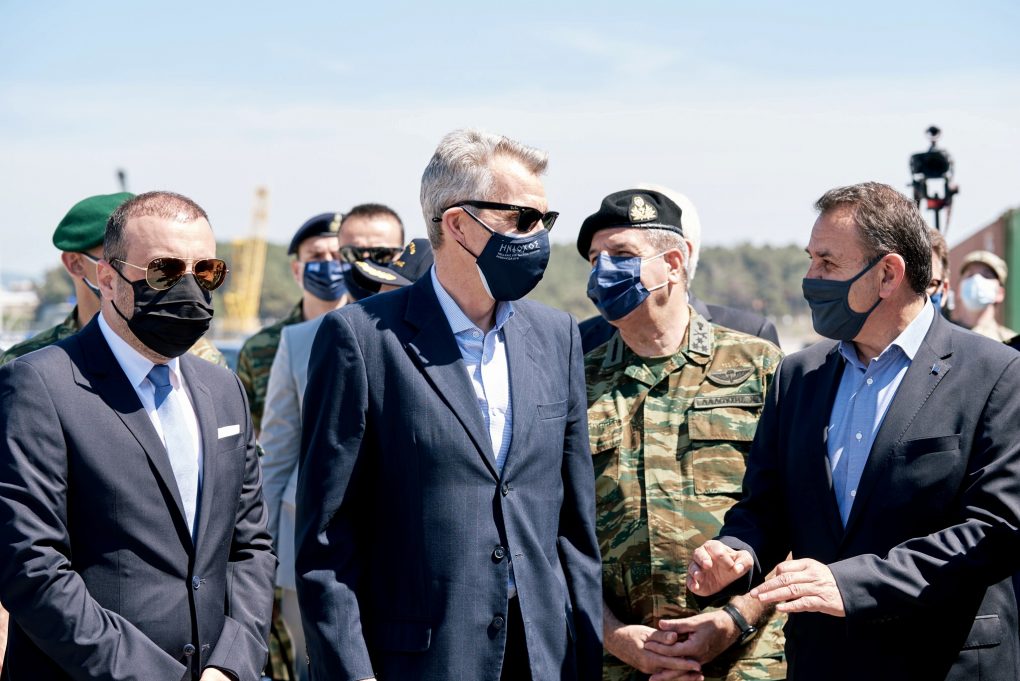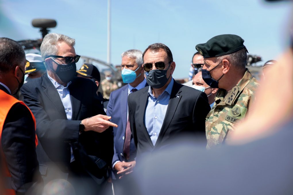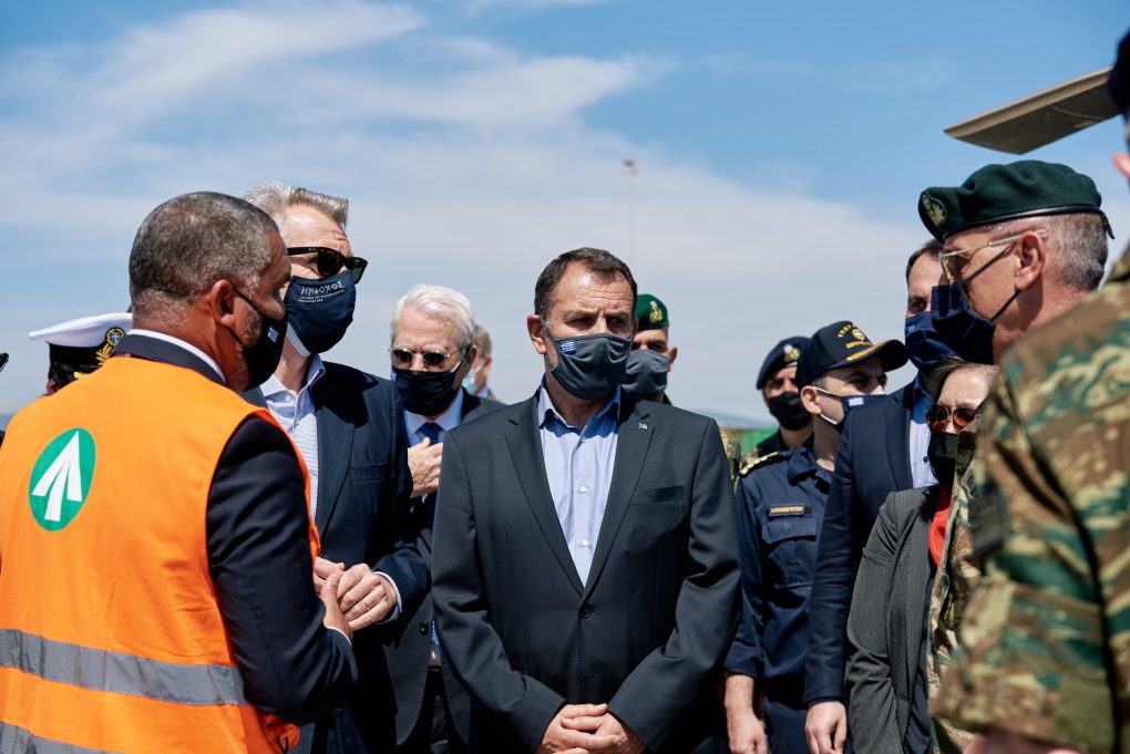 The Minister of National Defence Mr. Nikolaos Panagiotopoulos attended the multinational exercise “DEFENDER Europe 21” on the Distinguished Visitor Day, held at the port of Alexandroupoli, following an invitation by the Ambassador of the USA to Greece Mr. Geoffrey Pyatt.