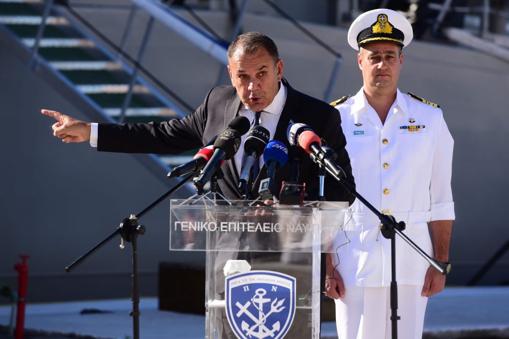 The celebration for the naming and addition of the new Fast Attack Missile Craft “LT VLAHAKOS” in the Hellenic Navy, which took place in the presence of PM Mr. Kyriakos Mitsotakis at the Fast Boats Command, was also attended by the Minister of National Defence Mr. Nikolaos Panagiotopoulos.