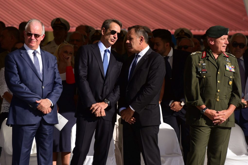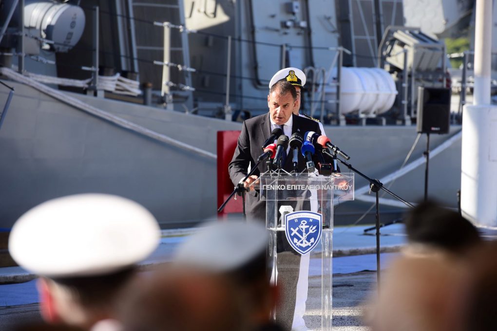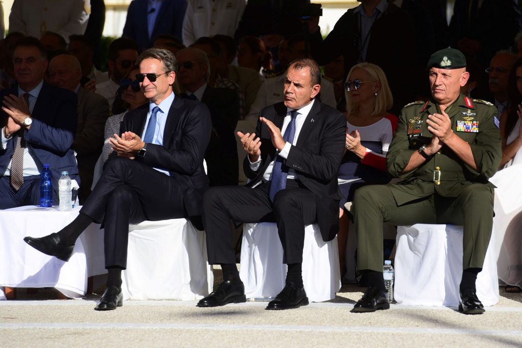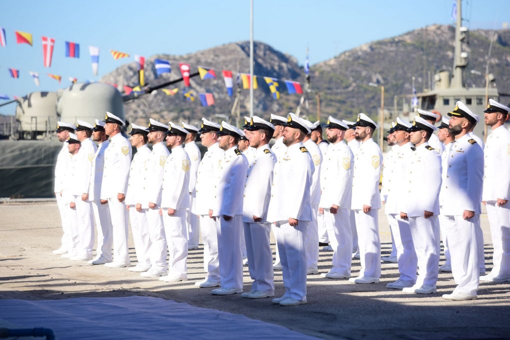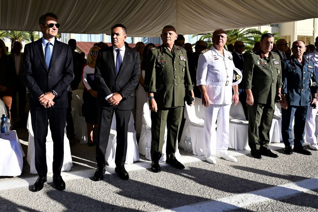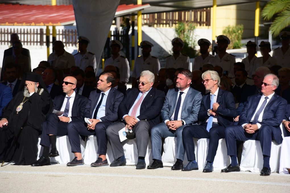 The ceremony, held at Skaramangas Naval Fort, was also attended by the President of the Hellenic Parliament Mr. Konstantinos Tassoulas, the Deputy Minister of National Defence Mr. Nikolaos Hardalias, the Deputy Minister of Maritime Affairs and Insular Policy Mr. Konstantinos Katsafados, the Deputy Minister to the PM Mr. Ioannis Bratakos, the Chief/HNDGS General Konstantinos Floros, the General Secretary of the Ministry of National Defence Mr. Antonios Oikonomou, the Chief/HAGS Lieutenant General Haralambos Laloussis, the Chief/HNGS Vice Admiral Stylianos Petrakis, and the Deputy Chief/HAFGS Major General Dimosthenis Grigoriadis.
